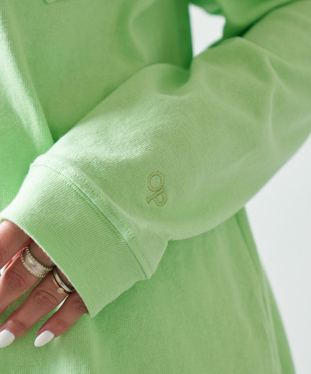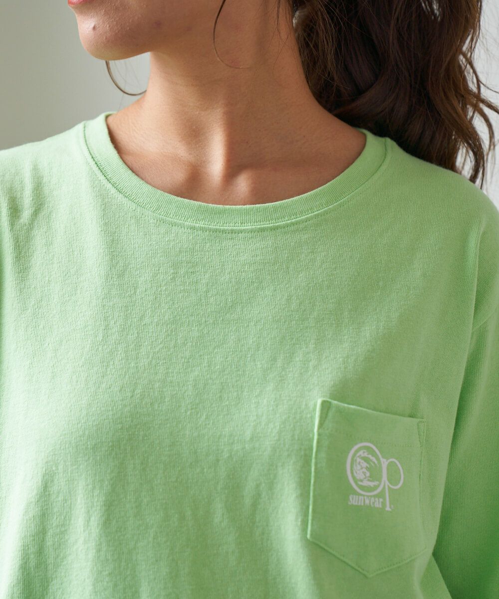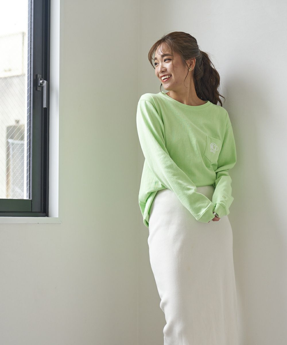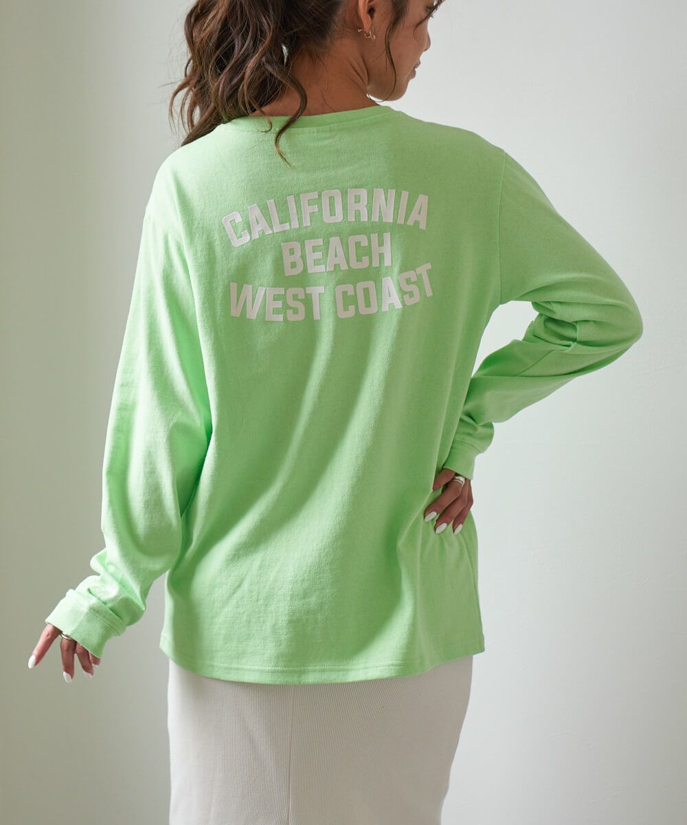 オーバーシルエットの胸ポケット付きロンT。バックロゴは高級感のあるフロッキープリント。