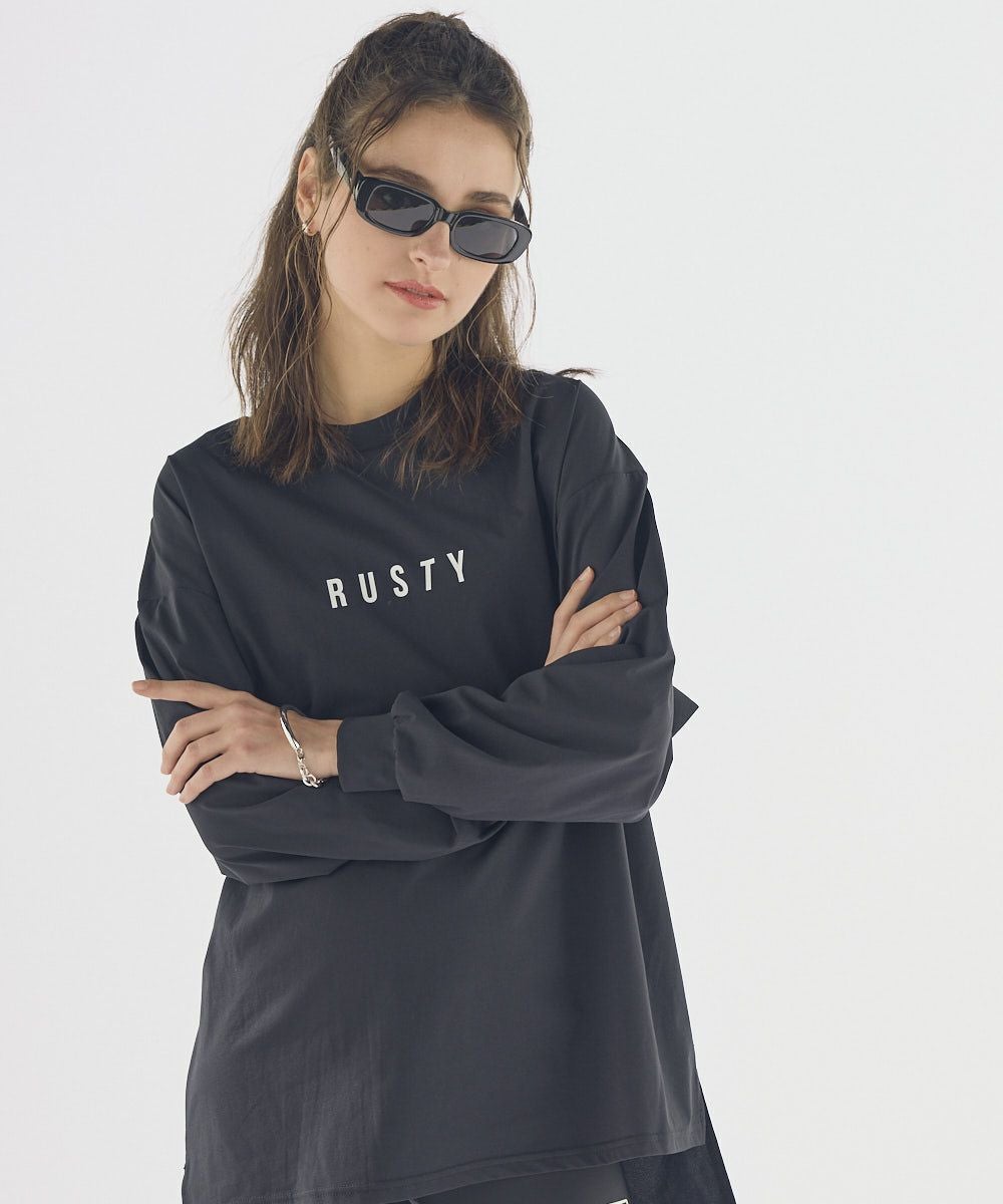 RUSTY/ラスティ水陸両用のニコちゃんロングTシャツ。