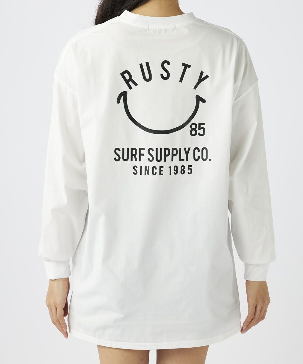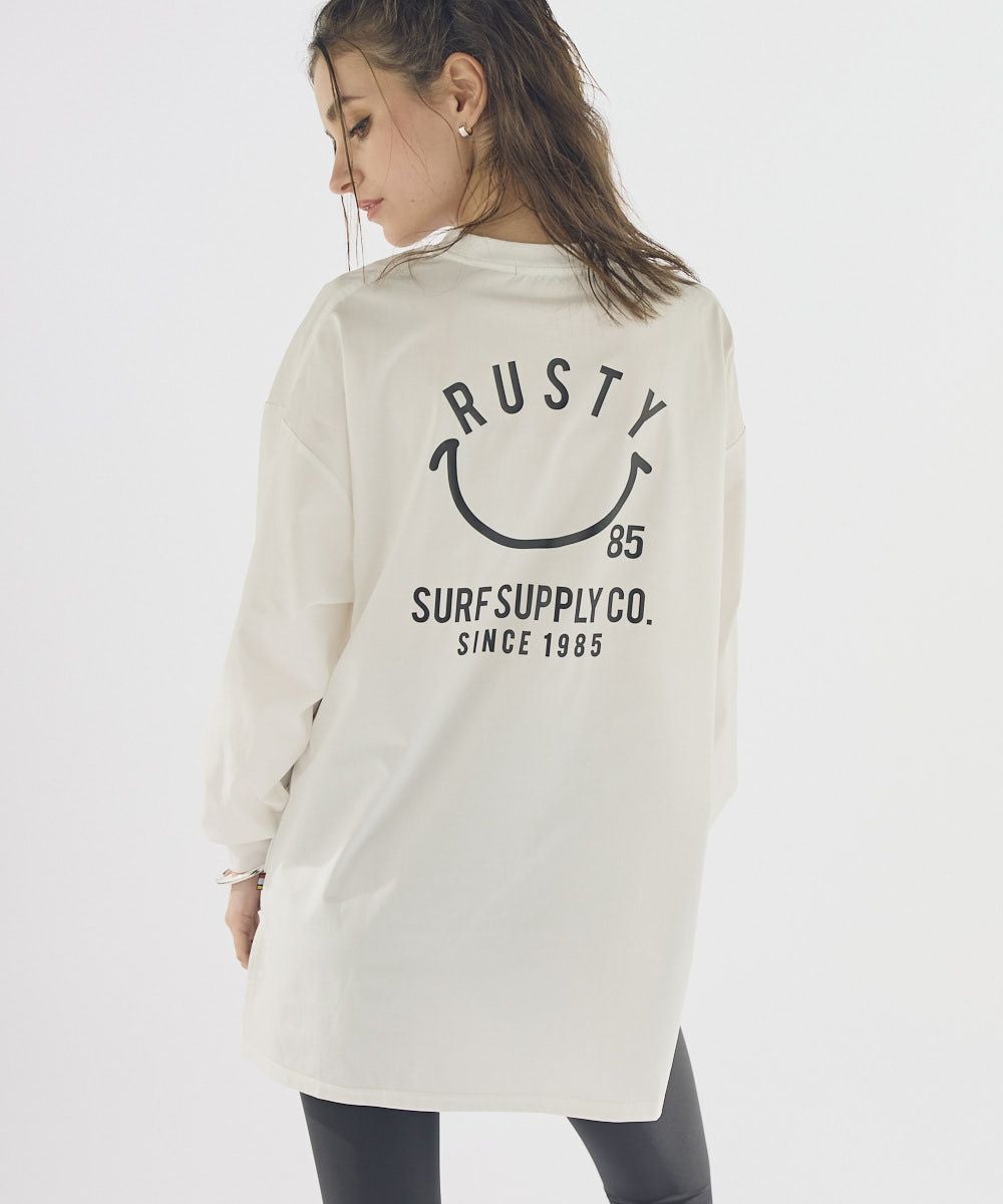 RUSTY/ラスティ水陸両用のニコちゃんロングTシャツ。