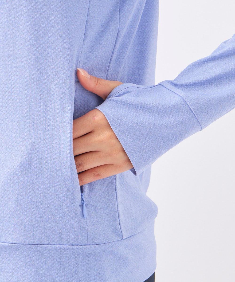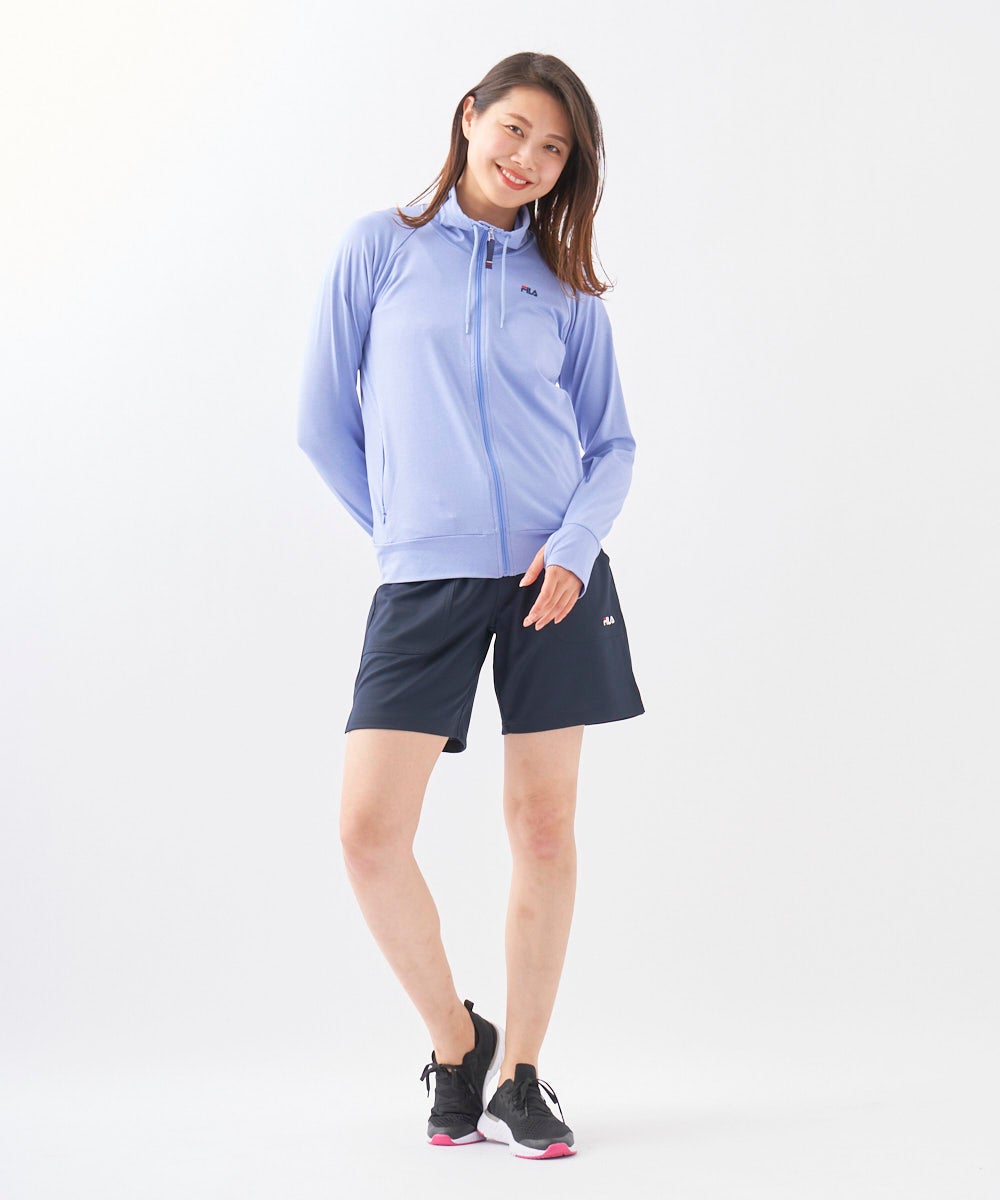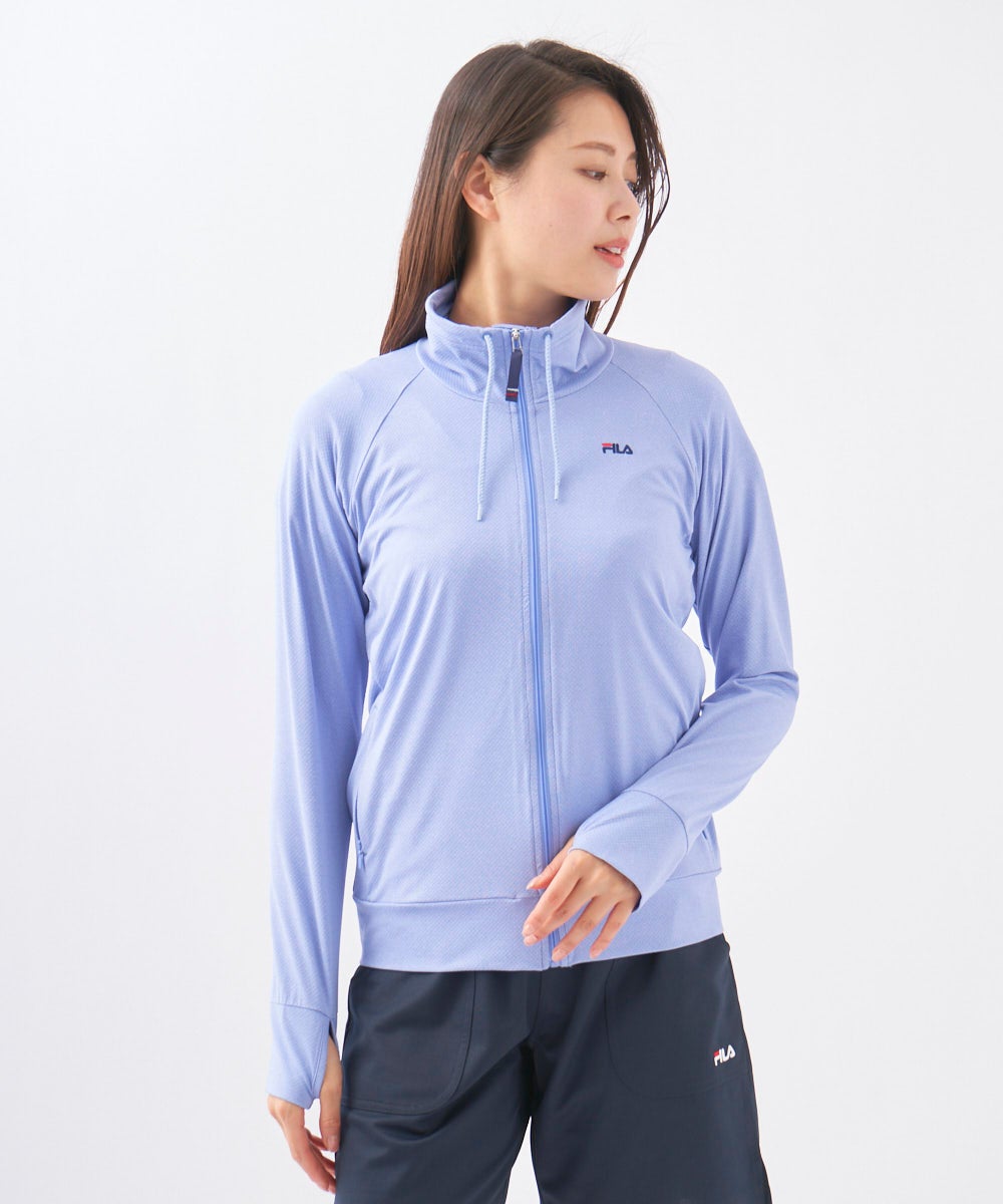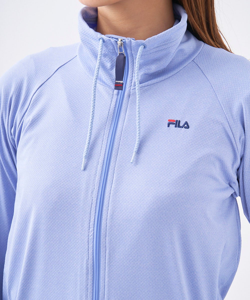 水陸両用のラッシュガード。スムース生地で軽量。杢目調の見た目が特徴です。UV遮蔽率90%以上・接触冷感で 真夏でも活躍できるラッシュ。胸元のFILAロゴでブランドイメージを。左右両脇にポケット付。指穴付きなので 手の甲を衿が高いので首元も日焼け防止対策には必需品のラッシュガードです。