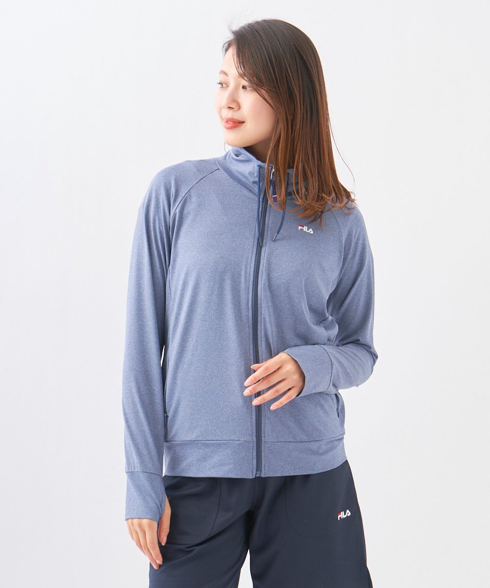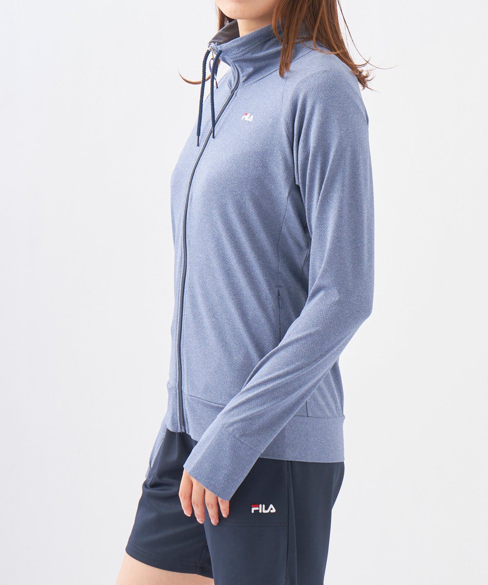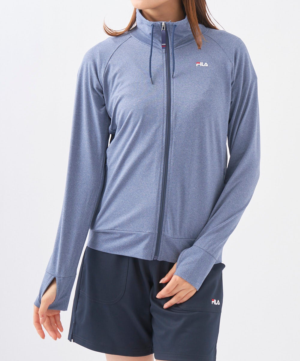 水陸両用のラッシュガード。スムース生地で軽量。杢目調の見た目が特徴です。UV遮蔽率90%以上・接触冷感で 真夏でも活躍できるラッシュ。胸元のFILAロゴでブランドイメージを。左右両脇にポケット付。指穴付きなので 手の甲を衿が高いので首元も日焼け防止対策には必需品のラッシュガードです。