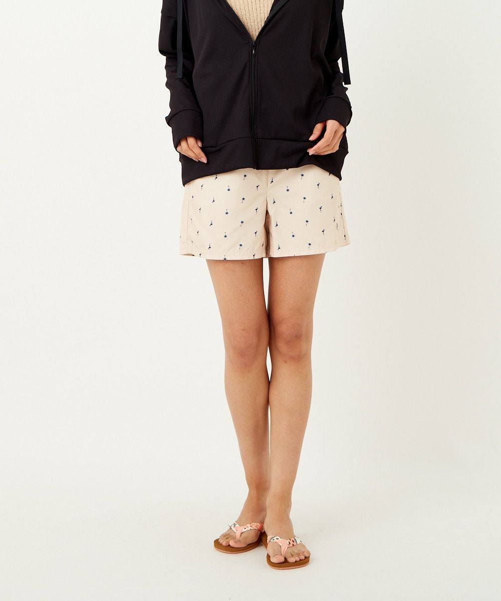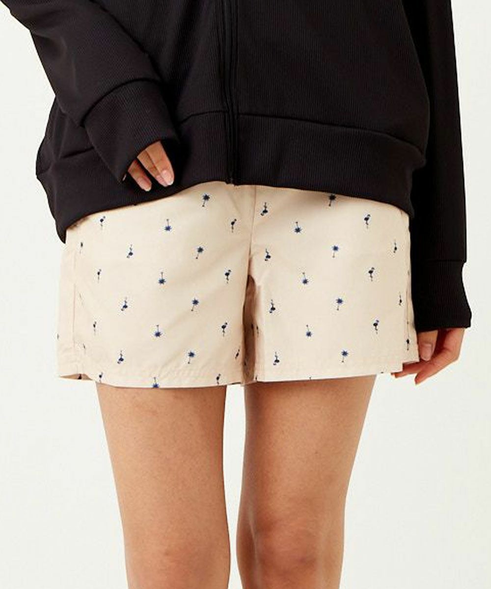 さりげないフラミンゴヤシの木の飛び柄はどんな水着にも合わせやすい一枚です。