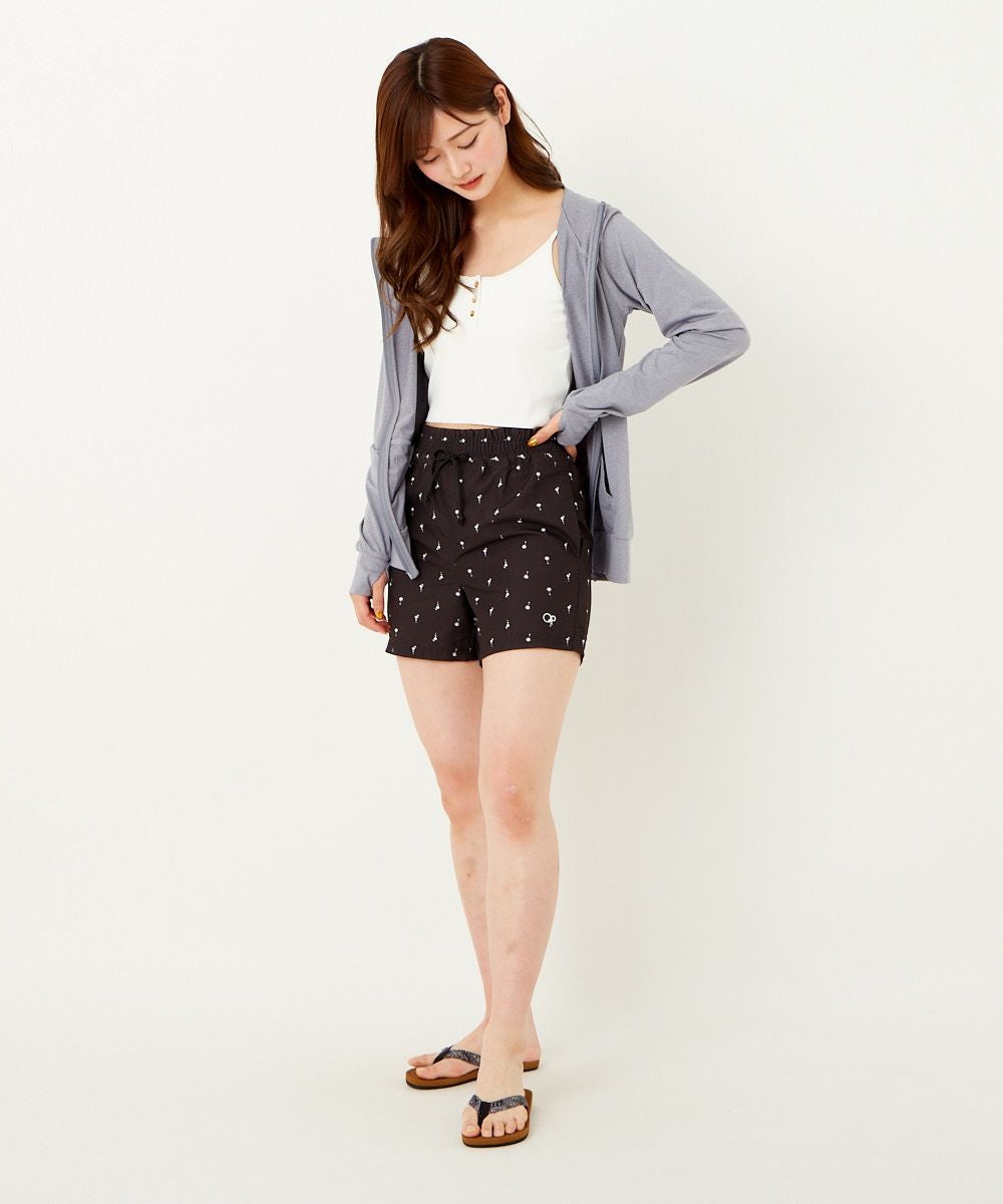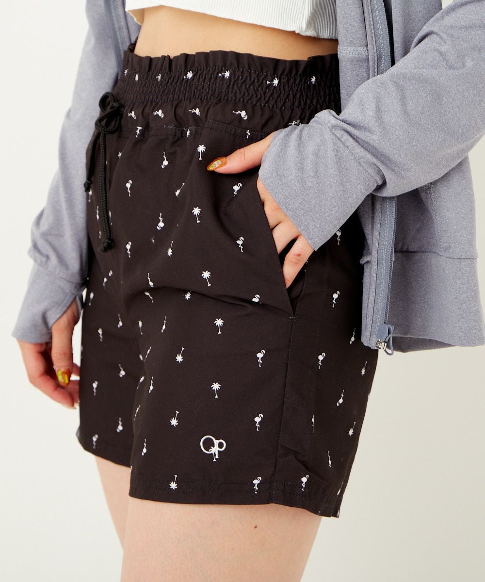 さりげないフラミンゴヤシの木の飛び柄はどんな水着にも合わせやすい一枚です。