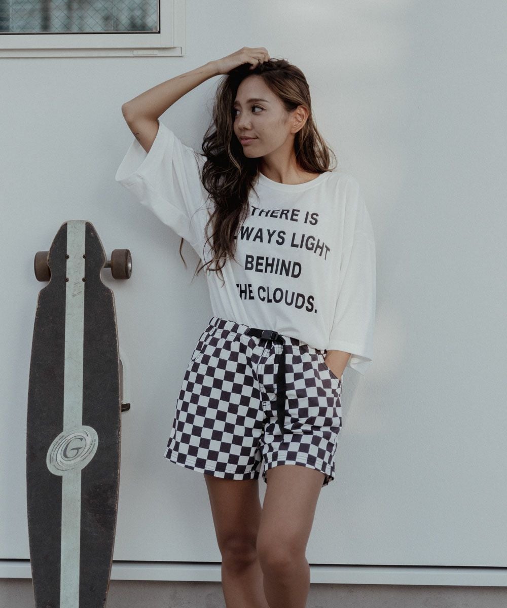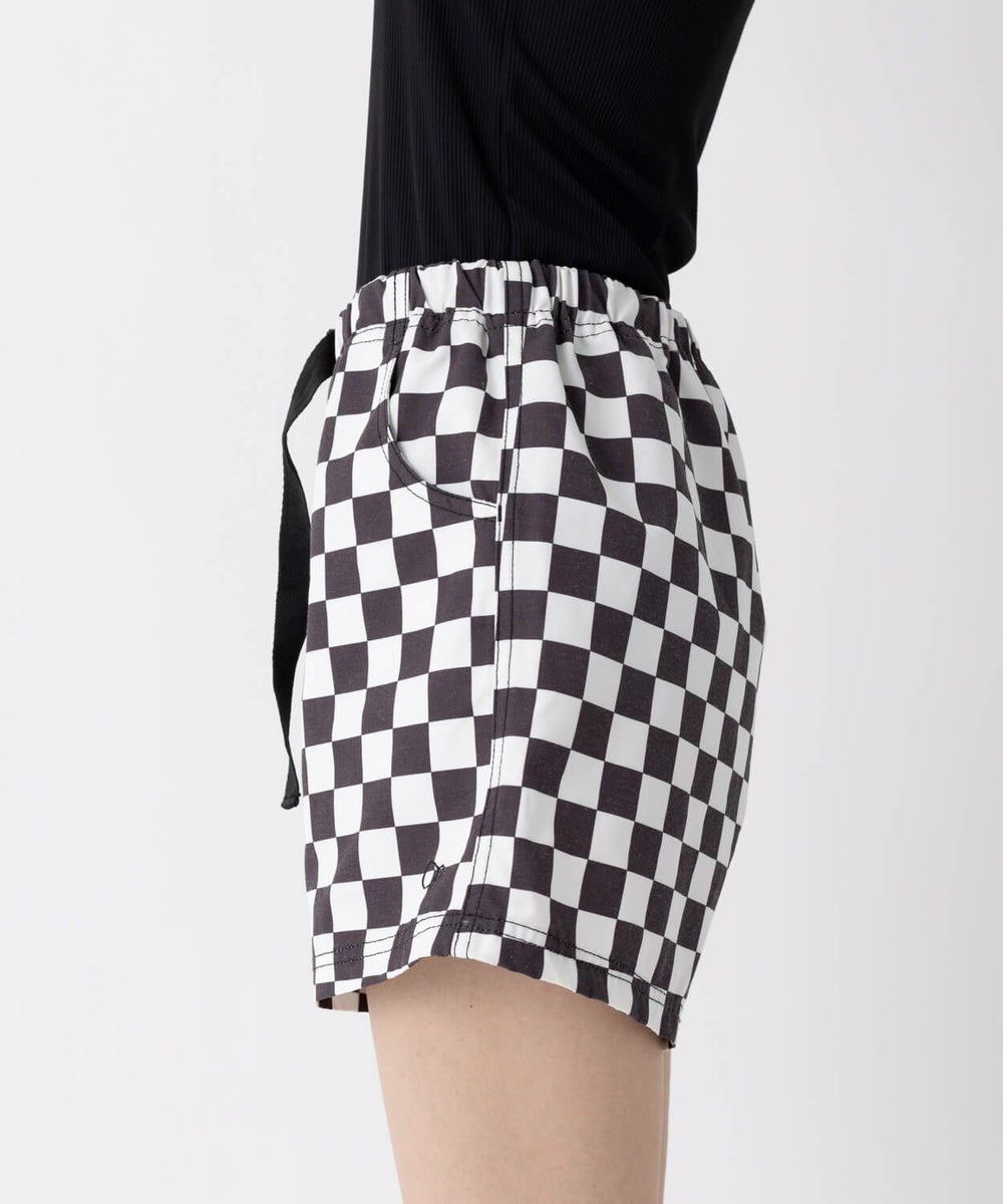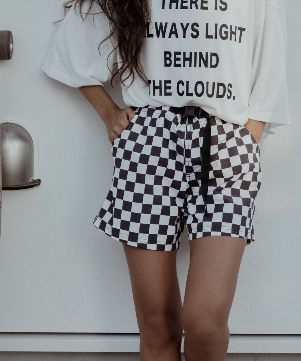洗い加工をかけヴィンテージ感を出したボードショーツ。ウエストベルトでウエストのサイズ調整可能。