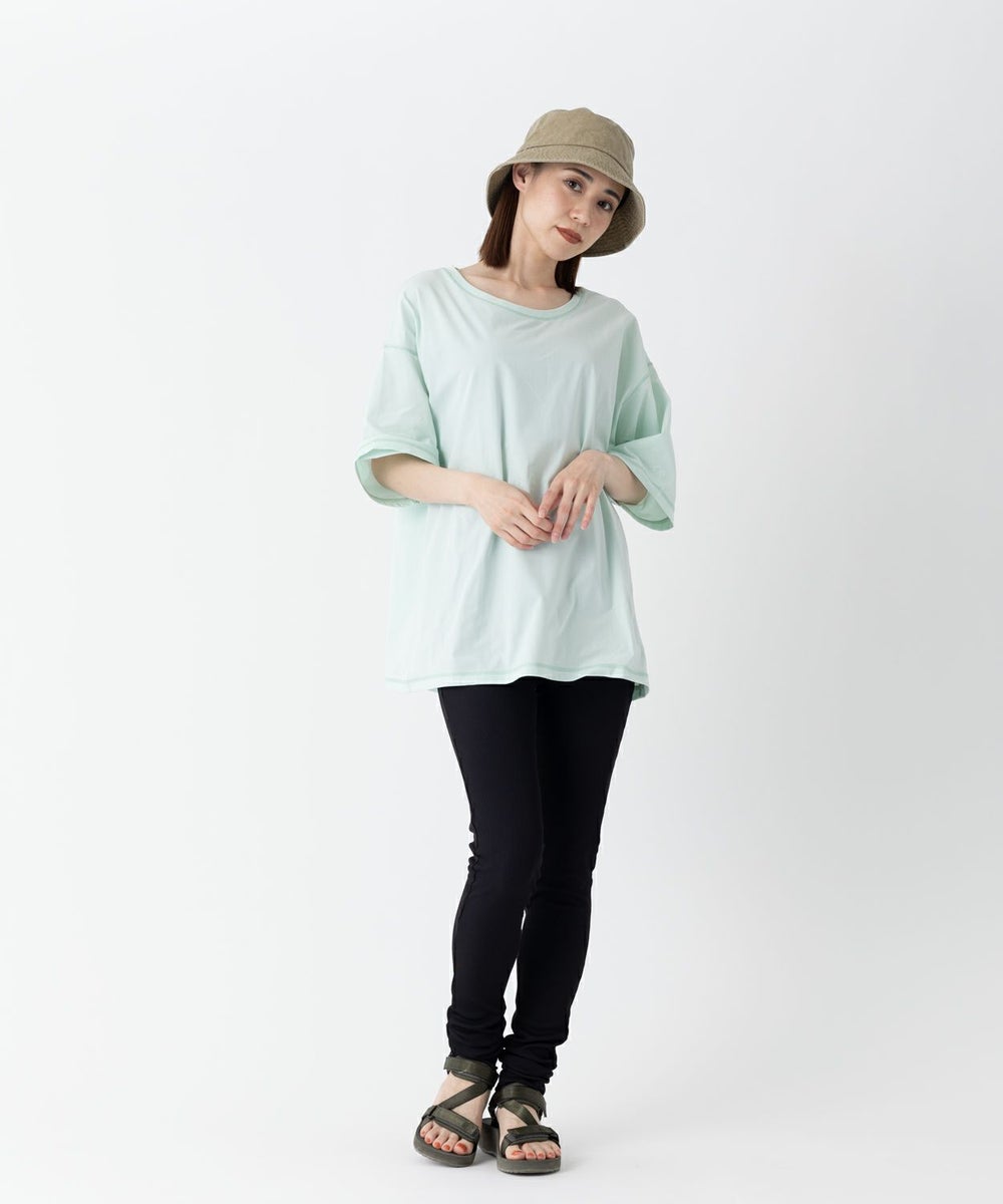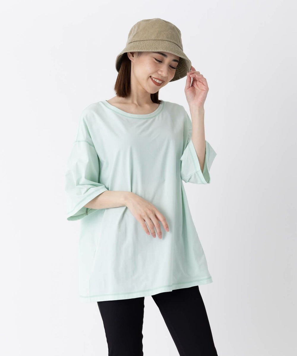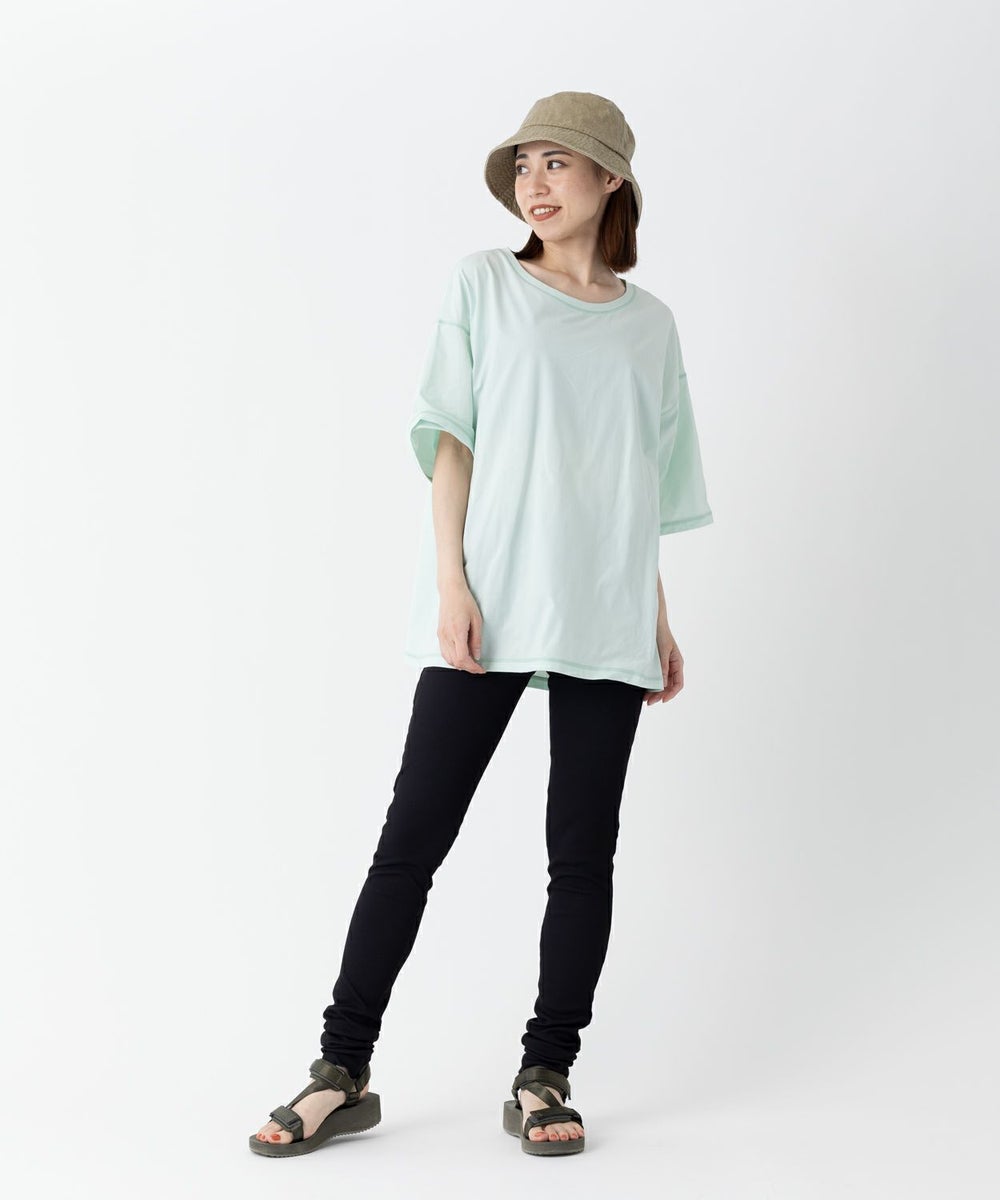 POPなカラー展開も可愛い、配色ステッチのゆったりシルエットの半袖ラッシュT。ハイブリッド素材で普段着でも、水回りのレジャーでも様々なシーンで着て頂けます。