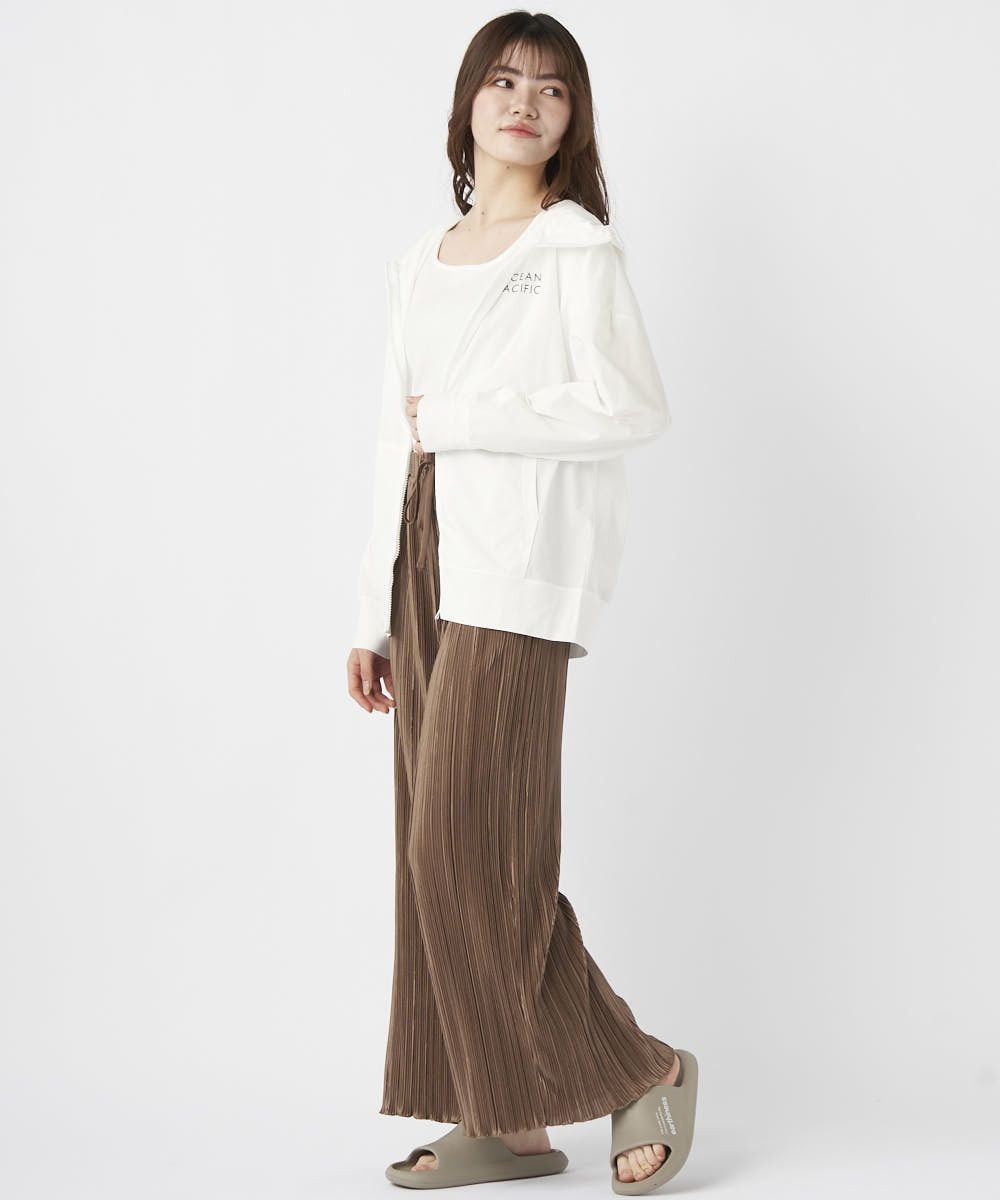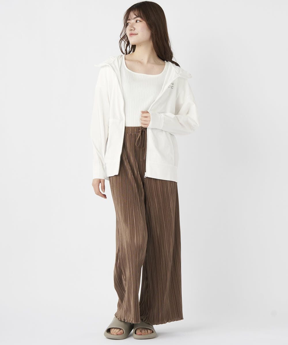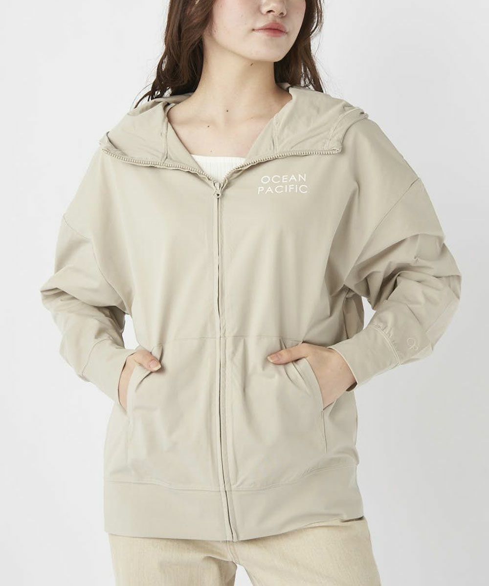 ポリエステル100%で軽量ながら、ストレッチ性と速乾性、UPF50+のUVカット機能をもったペアテックスを使用しました。 汗などの水分を吸い取ってサラサラな着心地をキープ。 まるで綿素材の様なマットな見え方なので、水着と合わせたコーデはもちろん、ランニングなどのフィットネス、トレーニングウェアやヨガウェアにもおすすめ。 袖口リブ仕様で安心感があり、カンガルーポケット付きで便利!またジップを閉めた際に、しっかり首部分もガードしてくれる襟の高さがあるのも嬉しい!アウトドアでの日焼け対策や野外ライブ・フェスやサウナやスパでもオススメです。 またシワにもなりにくいので、旅行やリゾート持っていくのにもぴったりです。