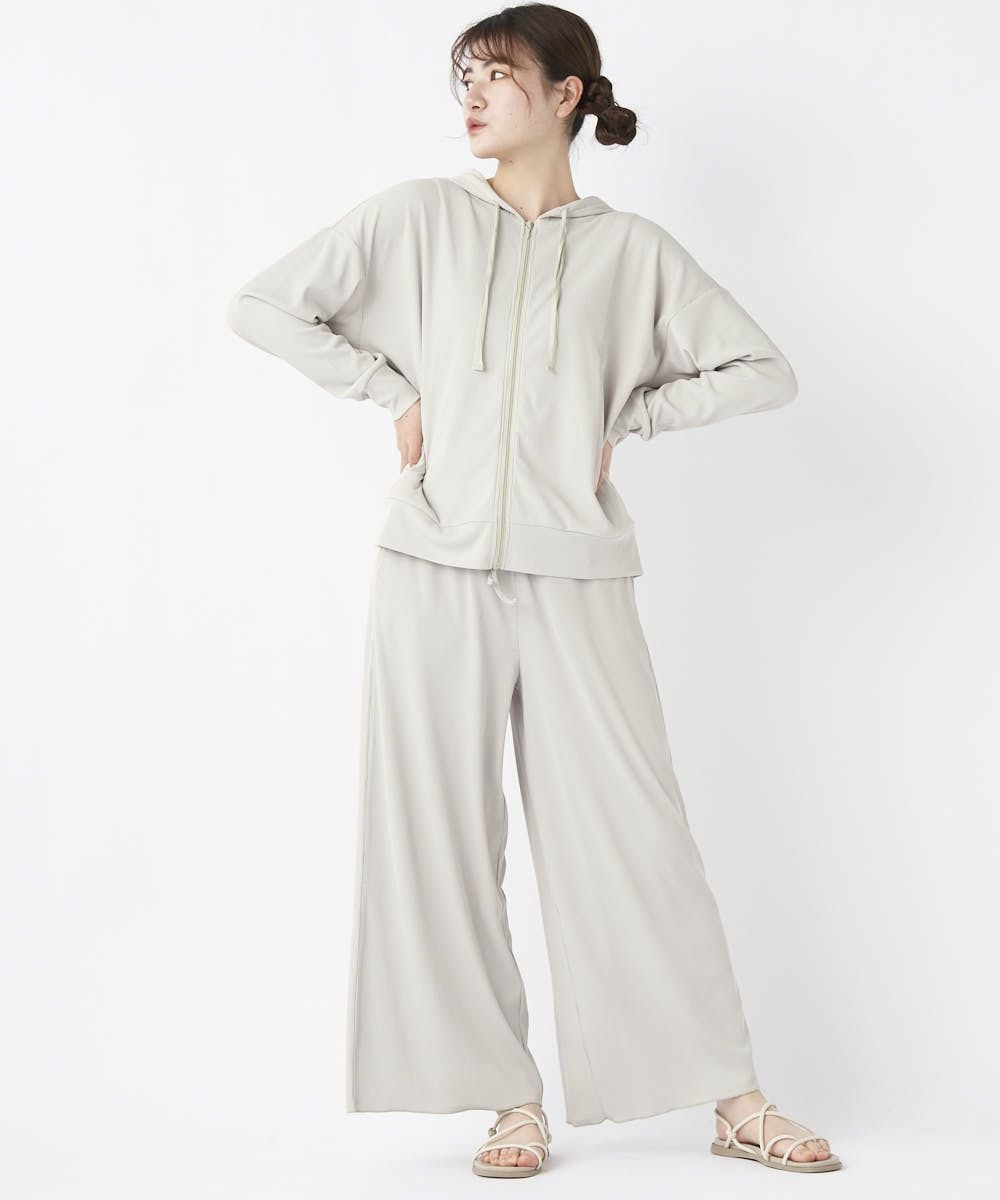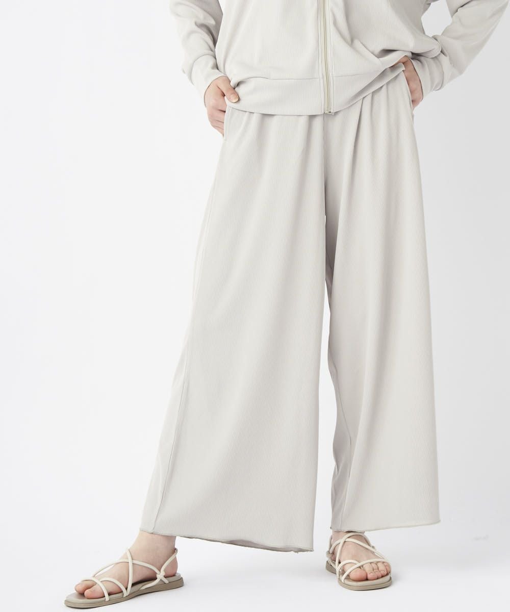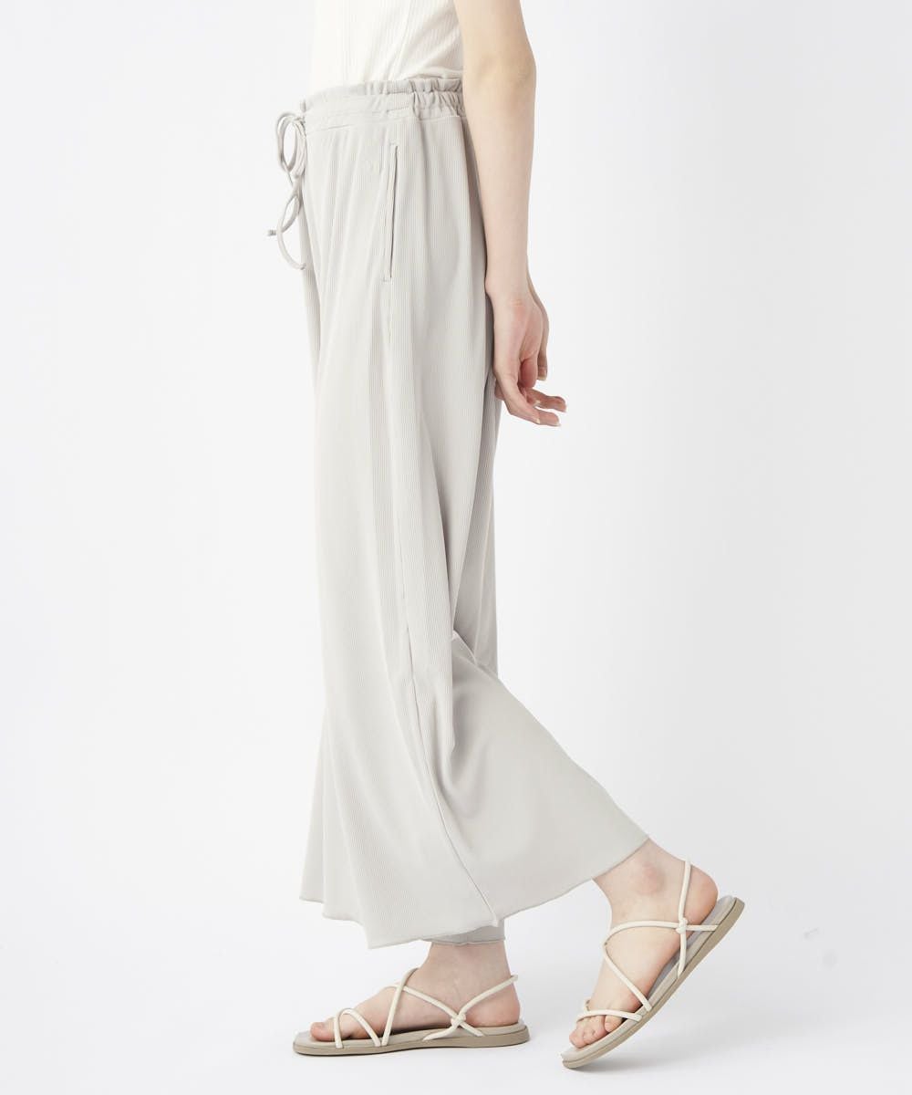ストレッチ性が有り、UVカット、耐塩素の機能付きリブ素材で水陸着用可能なハイブリッド商品。 シワになりにくく透けにくい。凸凹としたリブの表面が肌にベタつくことなくサラッと涼しい素材です。股上深めでしっかりお腹周りや腰回りもカバーしてくれてスッキリ! ゆったりしているので水着の上からも着用でき、ビーチサイドのリラックスタイムにもおすすめ。タウン着としてはシャツなどと合わせてゆるっと抜け感のあるコーディネートがおすすめ!