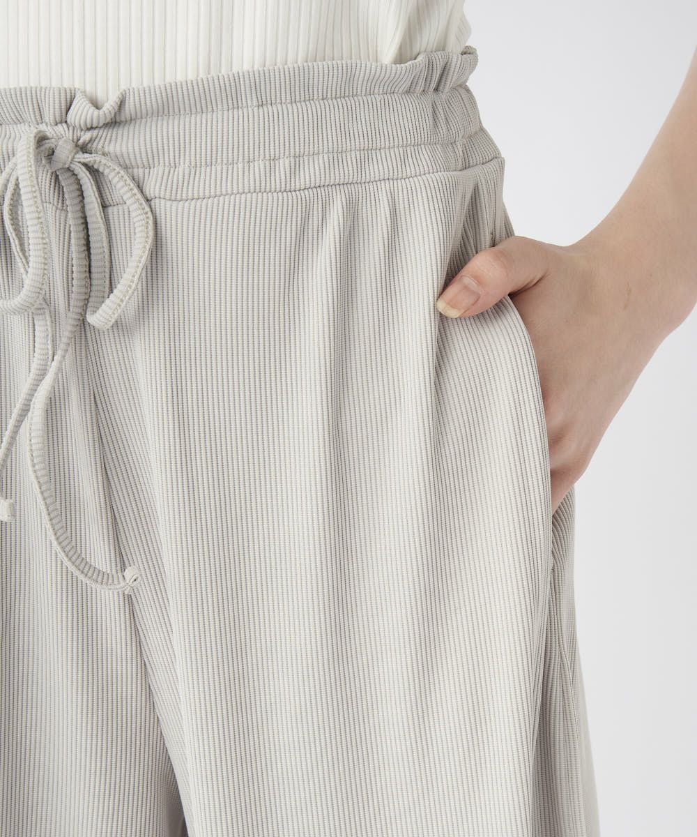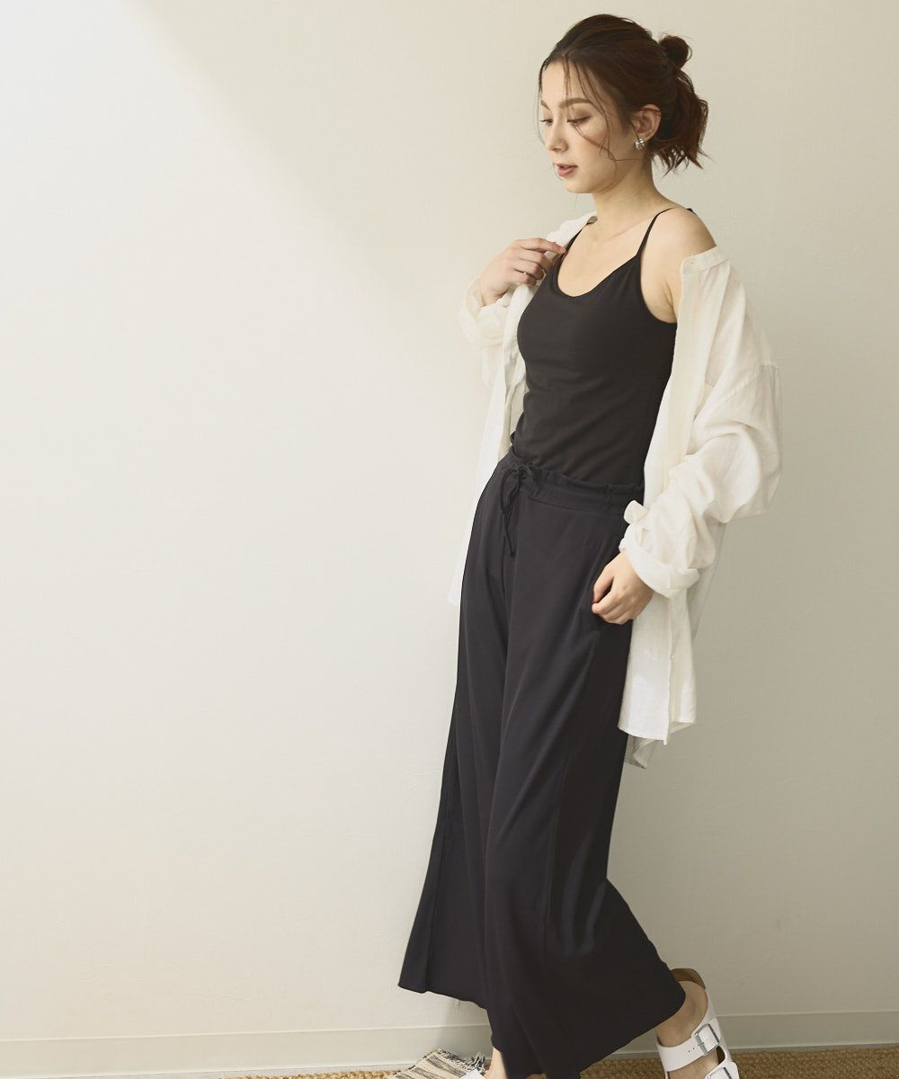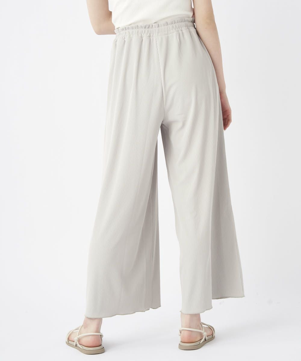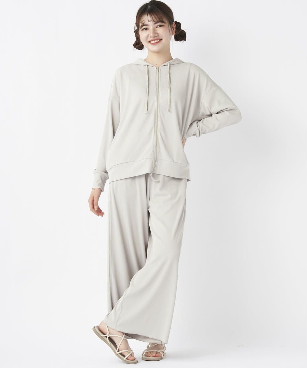 ストレッチ性が有り、UVカット、耐塩素の機能付きリブ素材で水陸着用可能なハイブリッド商品。 シワになりにくく透けにくい。凸凹としたリブの表面が肌にベタつくことなくサラッと涼しい素材です。股上深めでしっかりお腹周りや腰回りもカバーしてくれてスッキリ! ゆったりしているので水着の上からも着用でき、ビーチサイドのリラックスタイムにもおすすめ。タウン着としてはシャツなどと合わせてゆるっと抜け感のあるコーディネートがおすすめ!
