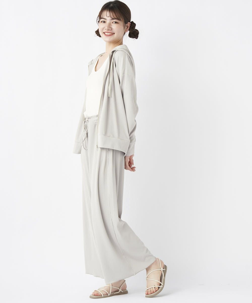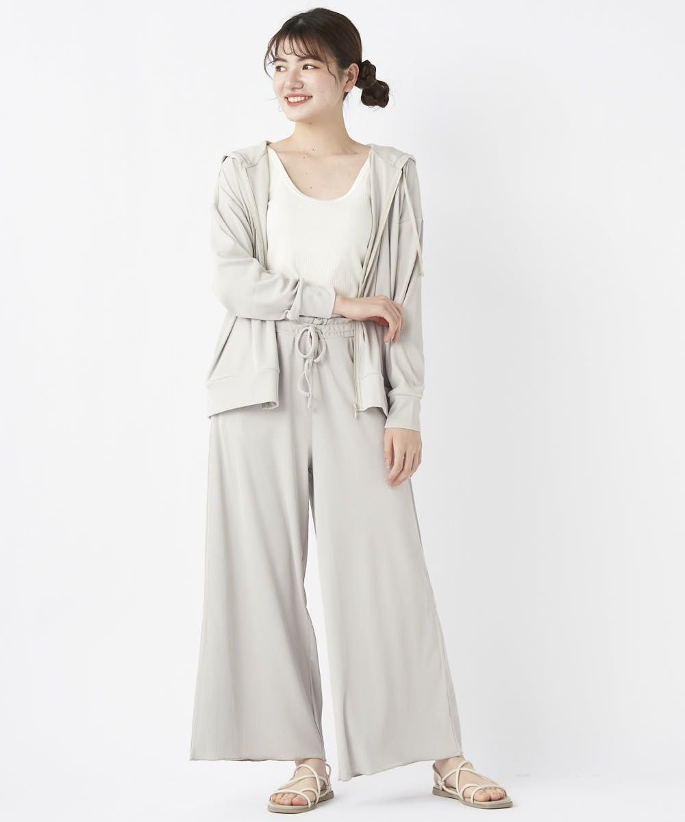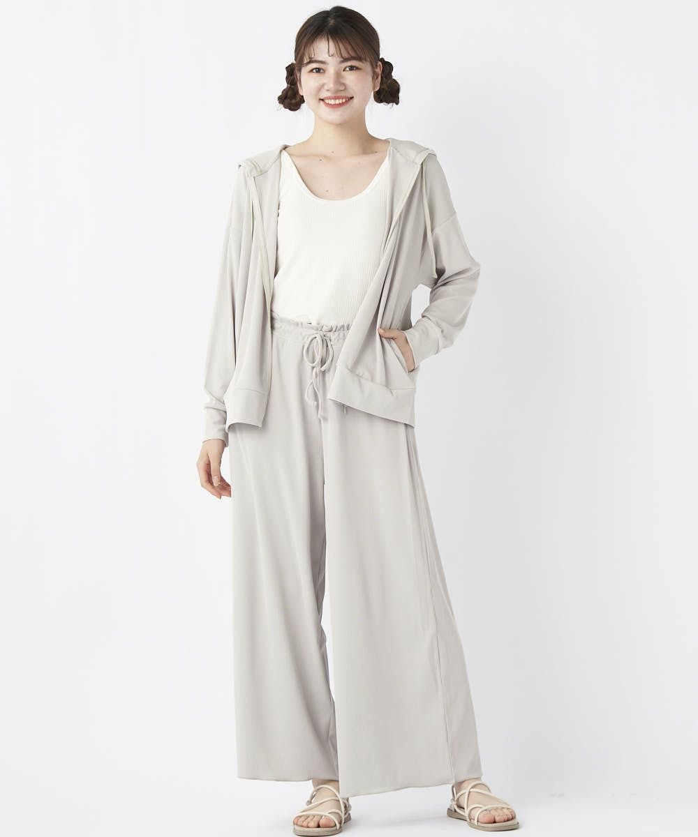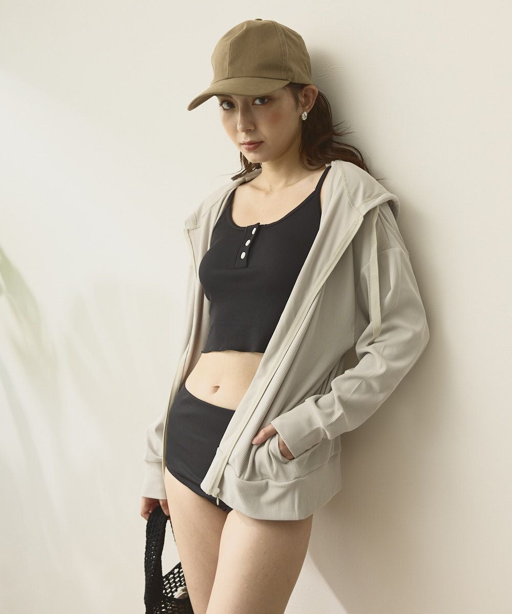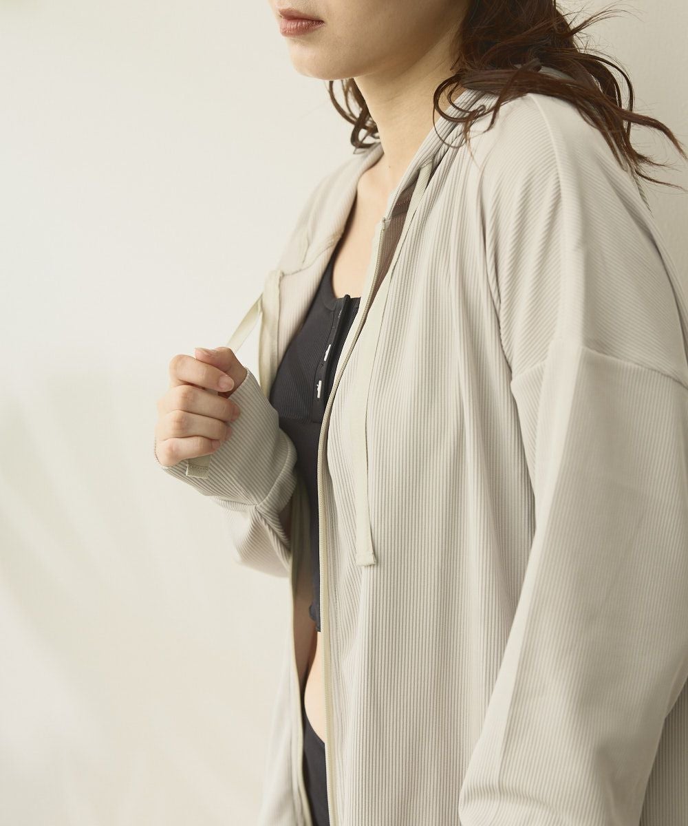 UVカット、耐塩素機能付きで水陸両用でお使いいただけます。 よく伸びてシワになりにくく透けにくく、凸凹としたリブの表面が肌にベタつくことなくサラッと涼しい素材です。車の運転や自転車などでの日焼け対策や、室内の冷房対策として日常で使用でき、海川などの水辺でも使える便利アイテムです! ゆったりシルエットで水着の上から体型カバーにも使える!! 脇ポケットもついていてとっても便利!
