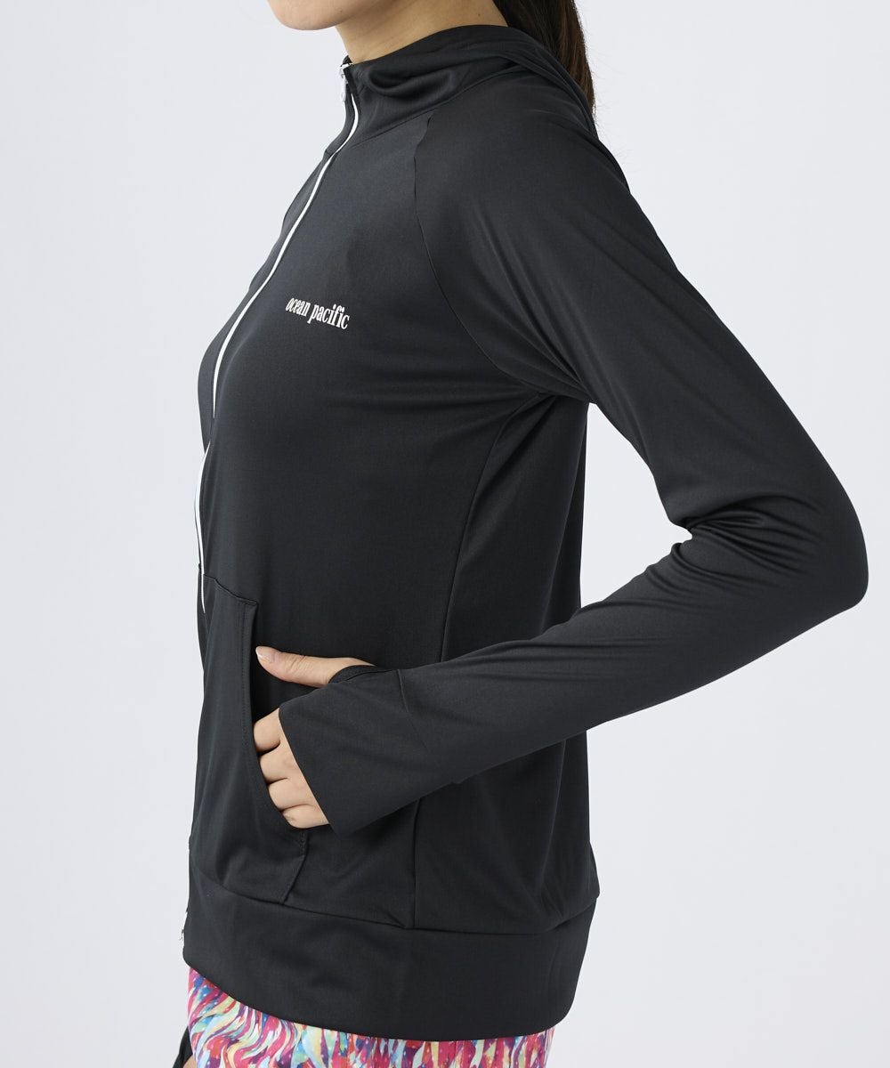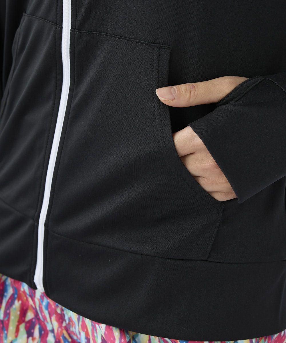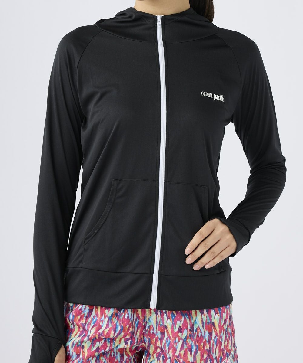 無地でシンプルなUVパーカー。ビーチやプールでのレジャーだけでなく、タウンユースでも多様に使用できる快適アイテムです。