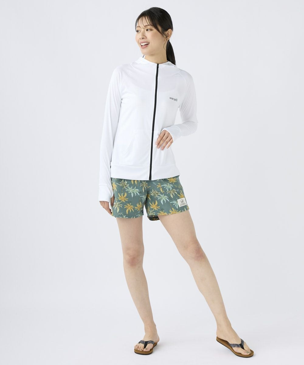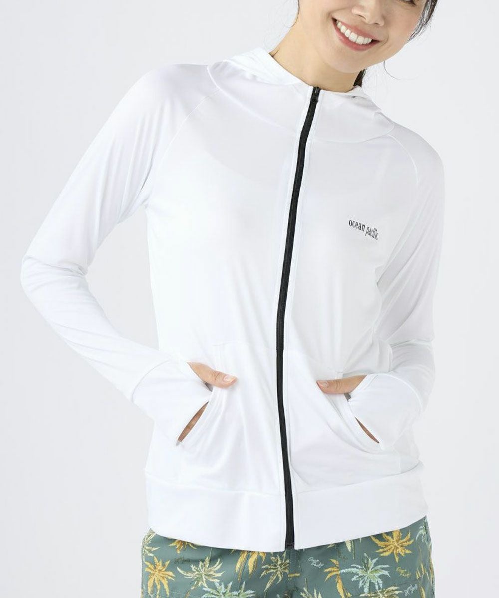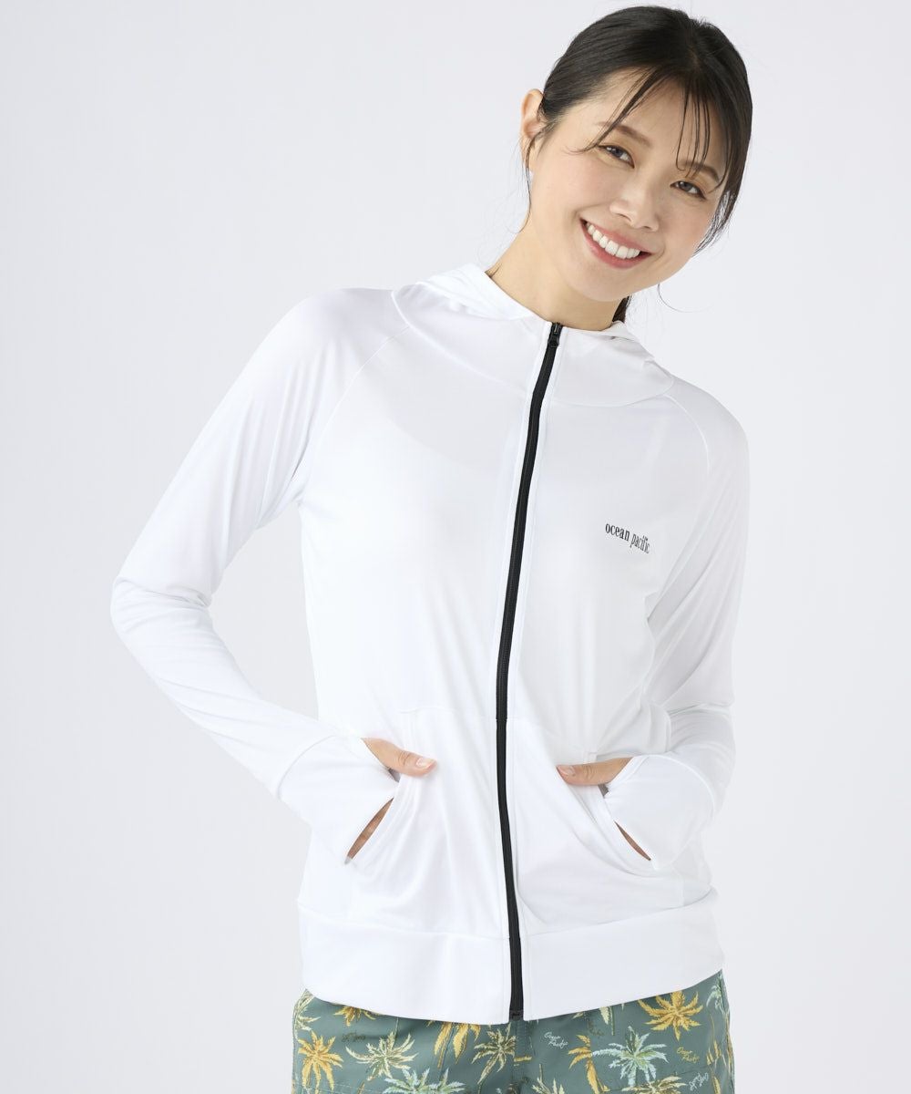 無地でシンプルなUVパーカー。ビーチやプールでのレジャーだけでなく、タウンユースでも多様に使用できる快適アイテムです。