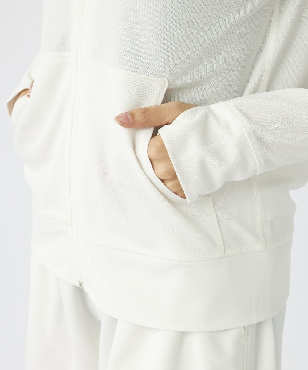 取り外し可能なフード、サムホール付きで紫外線対策もばっちり。