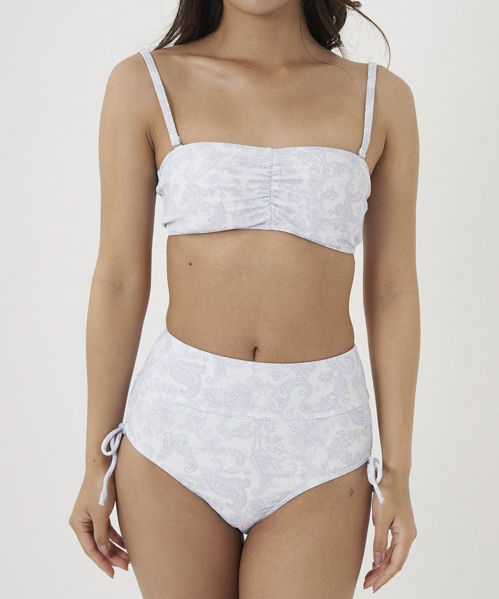 レディース くしゅくしゅしわ素材 ボレロ付き レトロペイズリー柄水着 3点セット