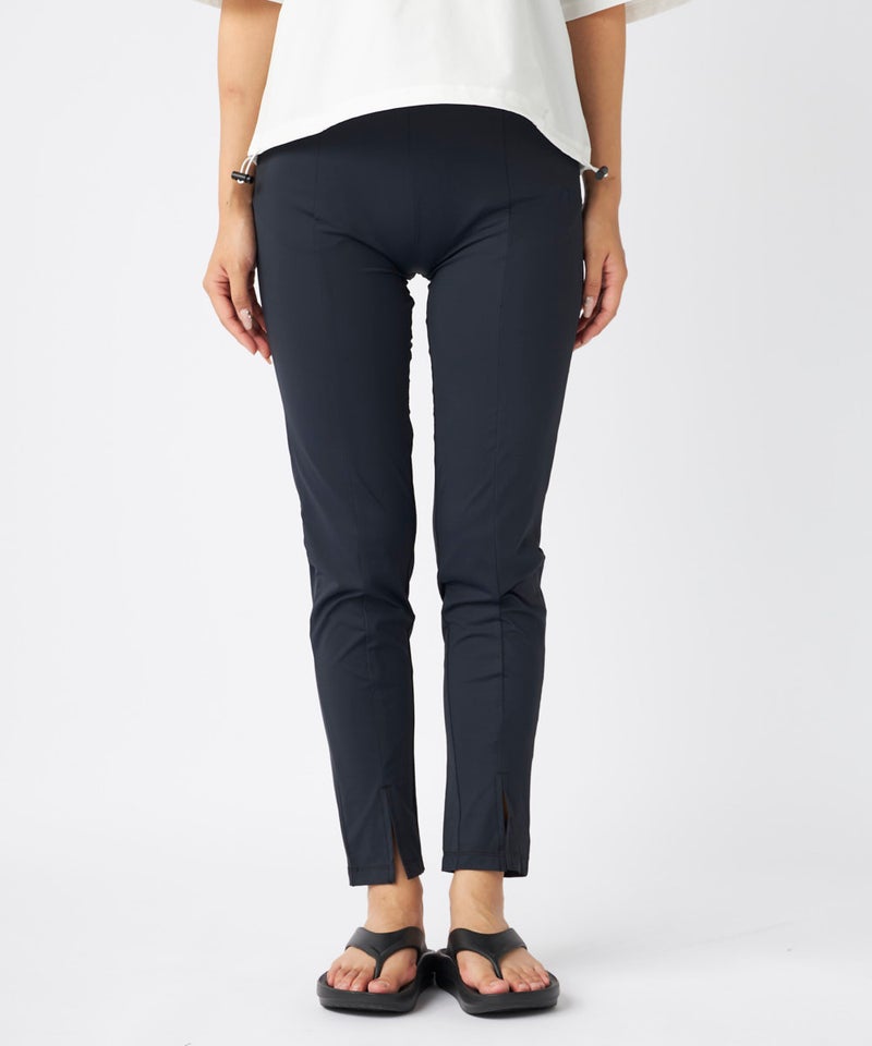 接触冷感機能のナイロン素材を使ったUVロングパンツです。レギンスよりもゆったりしたシルエットで、足の ラインをきれいに見せてくれます。そのまま海やプールにはもちろん、日常のUV対策にもおすすめです。UP F50+ 耐塩素 接触冷感