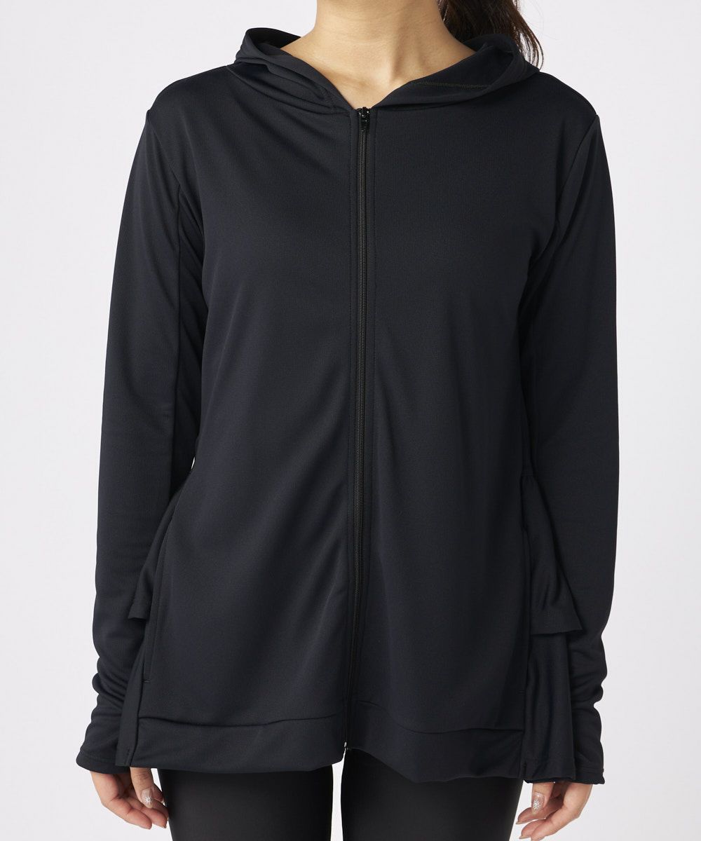 綿ライクなポリエステル100%の機能素材を使ったプルオーバー。薄手でハリ感があり、シャツ素材のように見えますが、実はストレッチ性のあるラッシュ素材でストレスフリーな着心地です。バックの首元はファスナー仕様で着脱もスムーズ。ふんだんに生地を使い、ギャザーをよせて甘さをプラス。ジャケットあわせで卒入園などのセレモニーにもおすすめです。フロントのドローコードで丈感も調整可能です。機能:UPF50+耐塩素吸汗速乾ストレッチ軽量