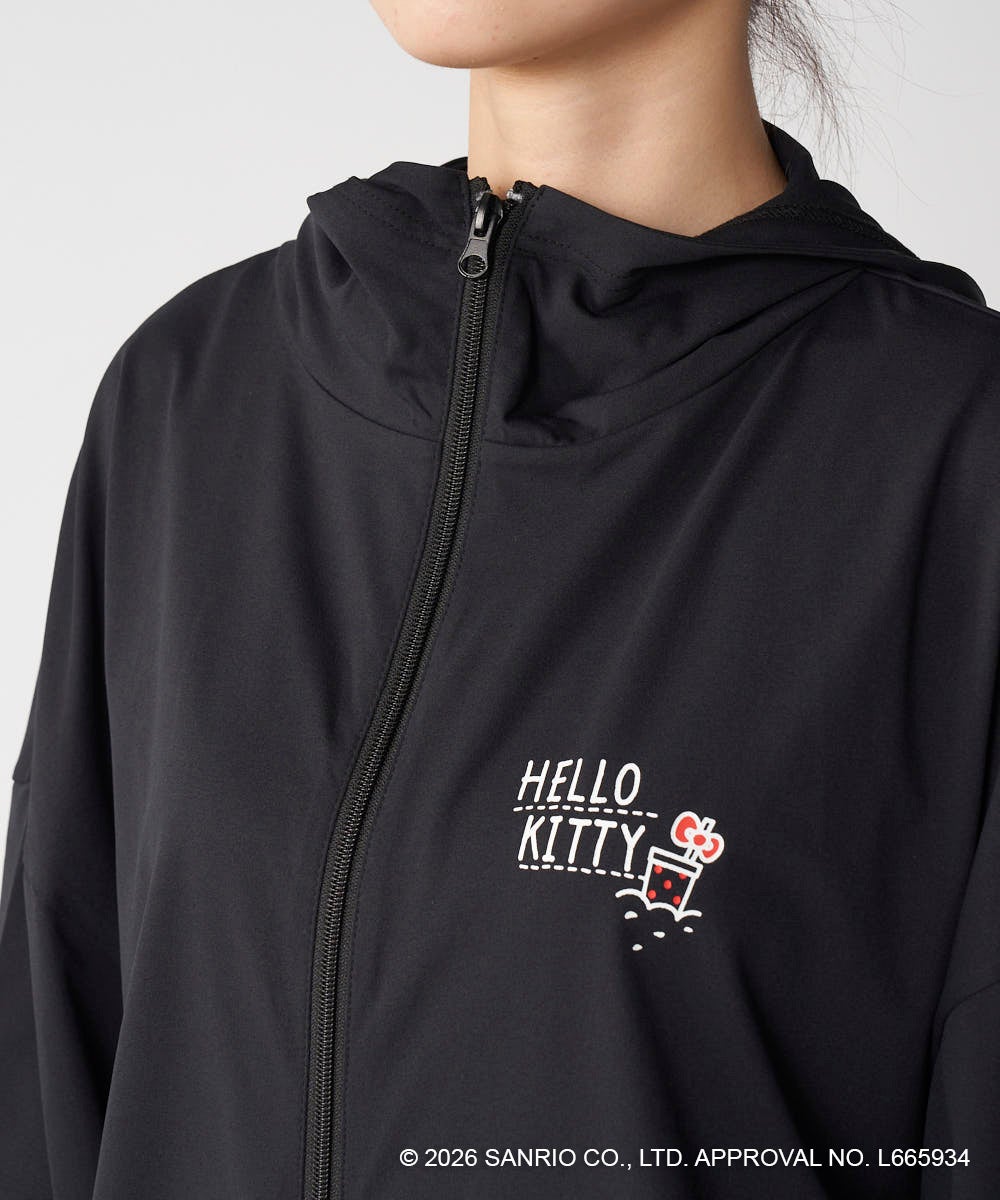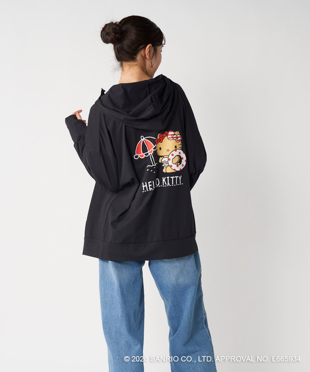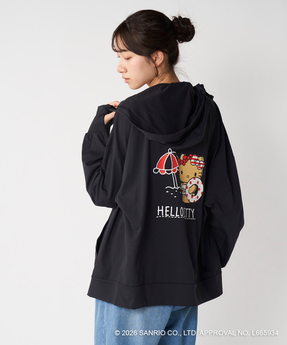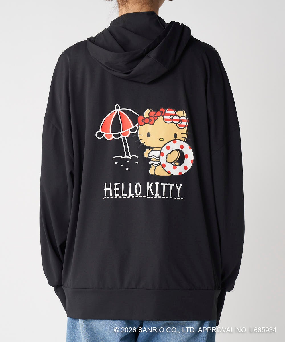 ハローキティのバックプリントがかわいいラッシュパーカーは、フィンガーホール付きの長袖だから、日差しから肌をしっかりと守ってくれます。