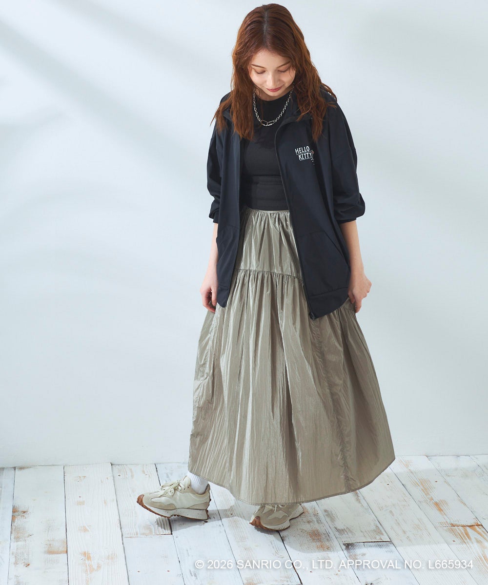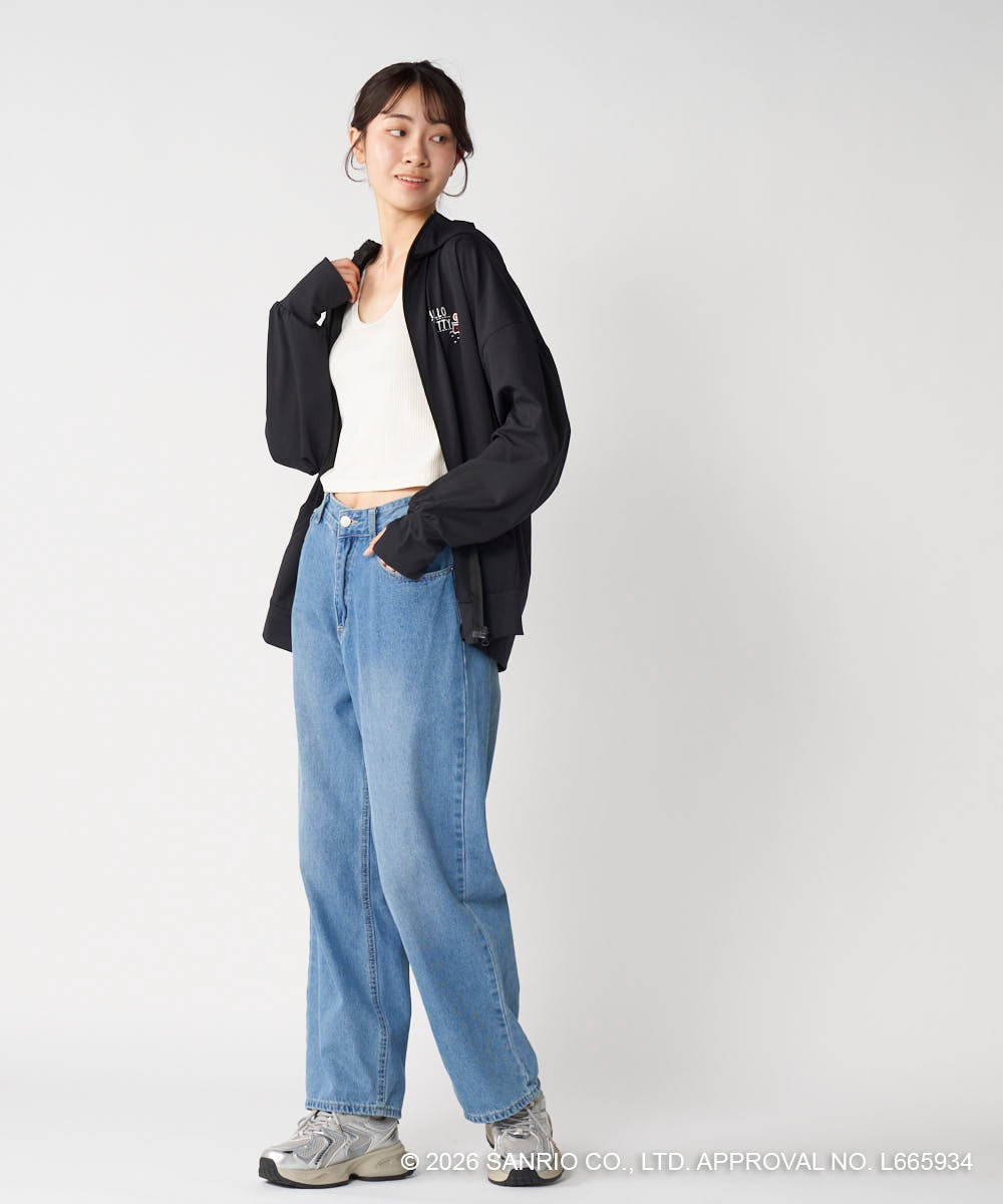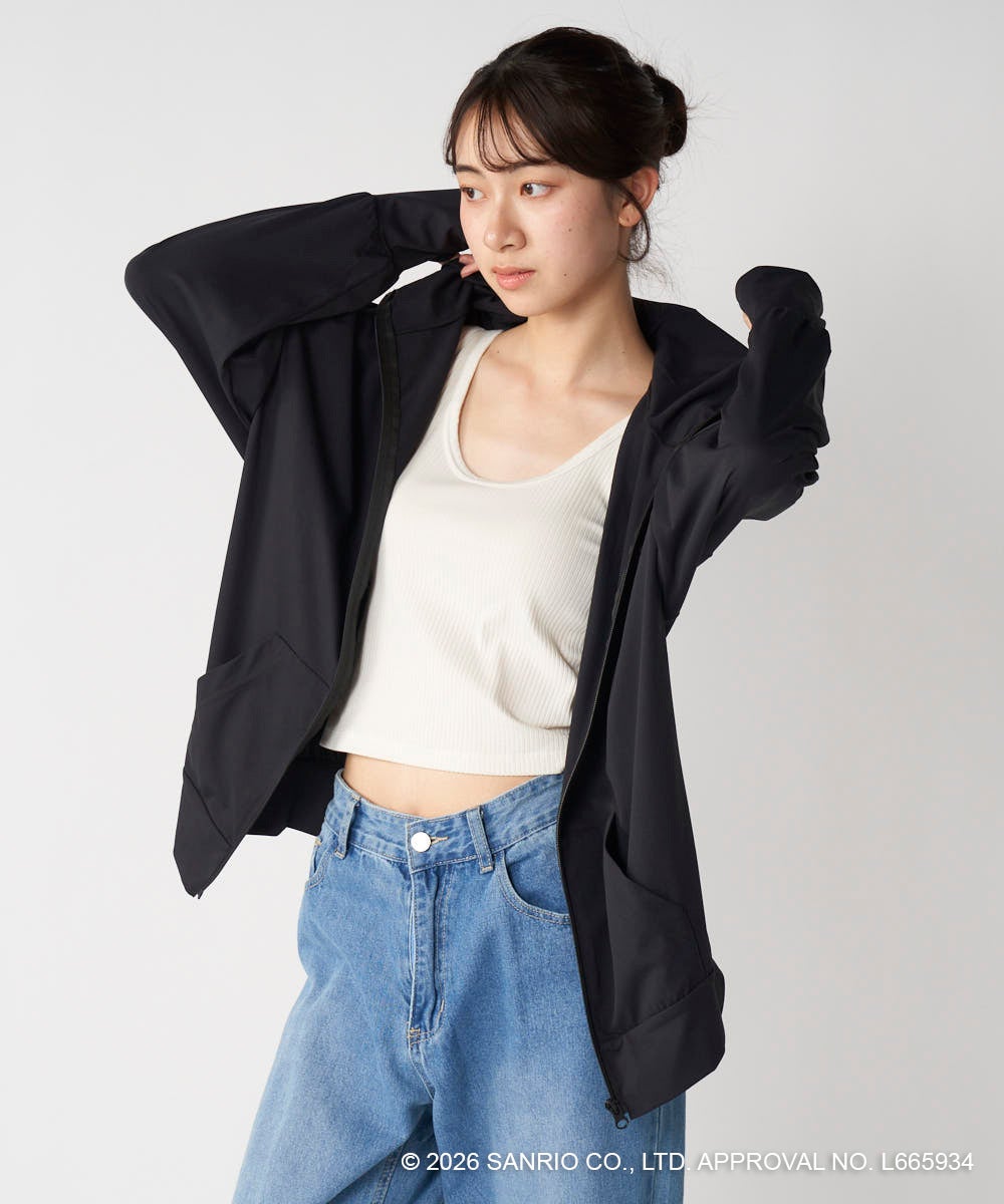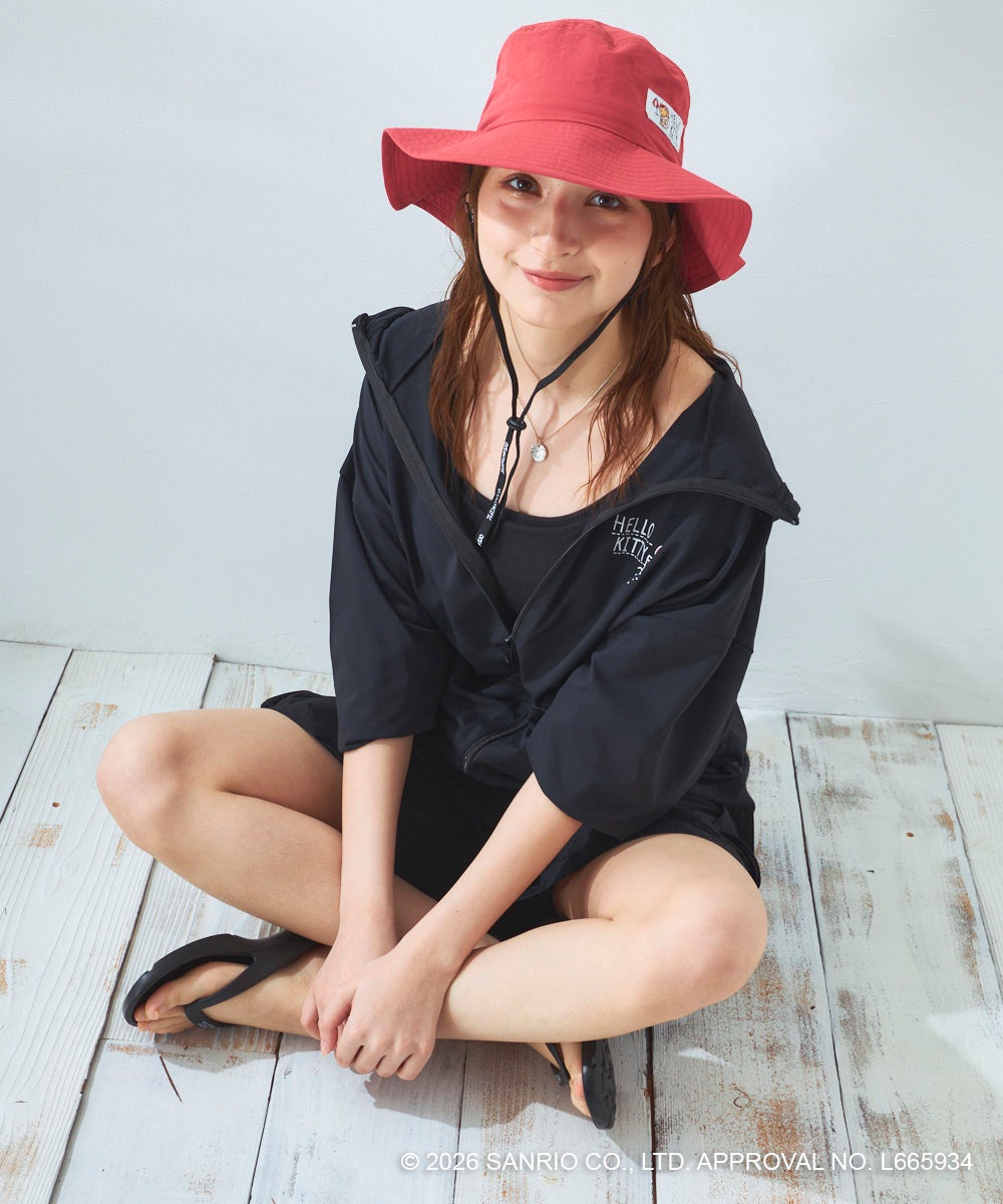ハローキティのバックプリントがかわいいラッシュパーカーは、フィンガーホール付きの長袖だから、日差しから肌をしっかりと守ってくれます。