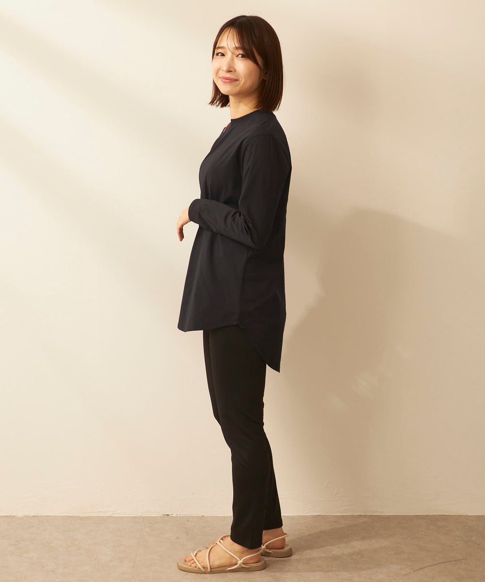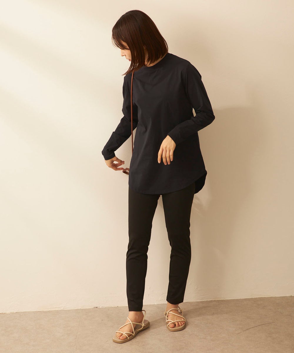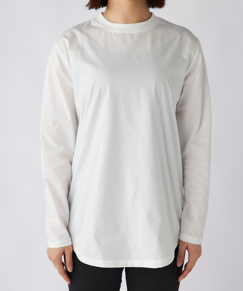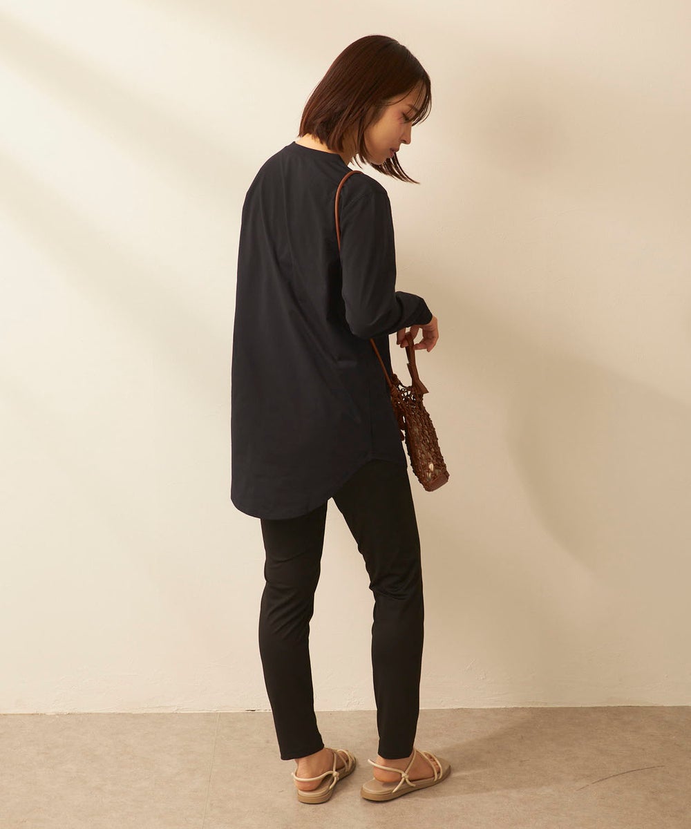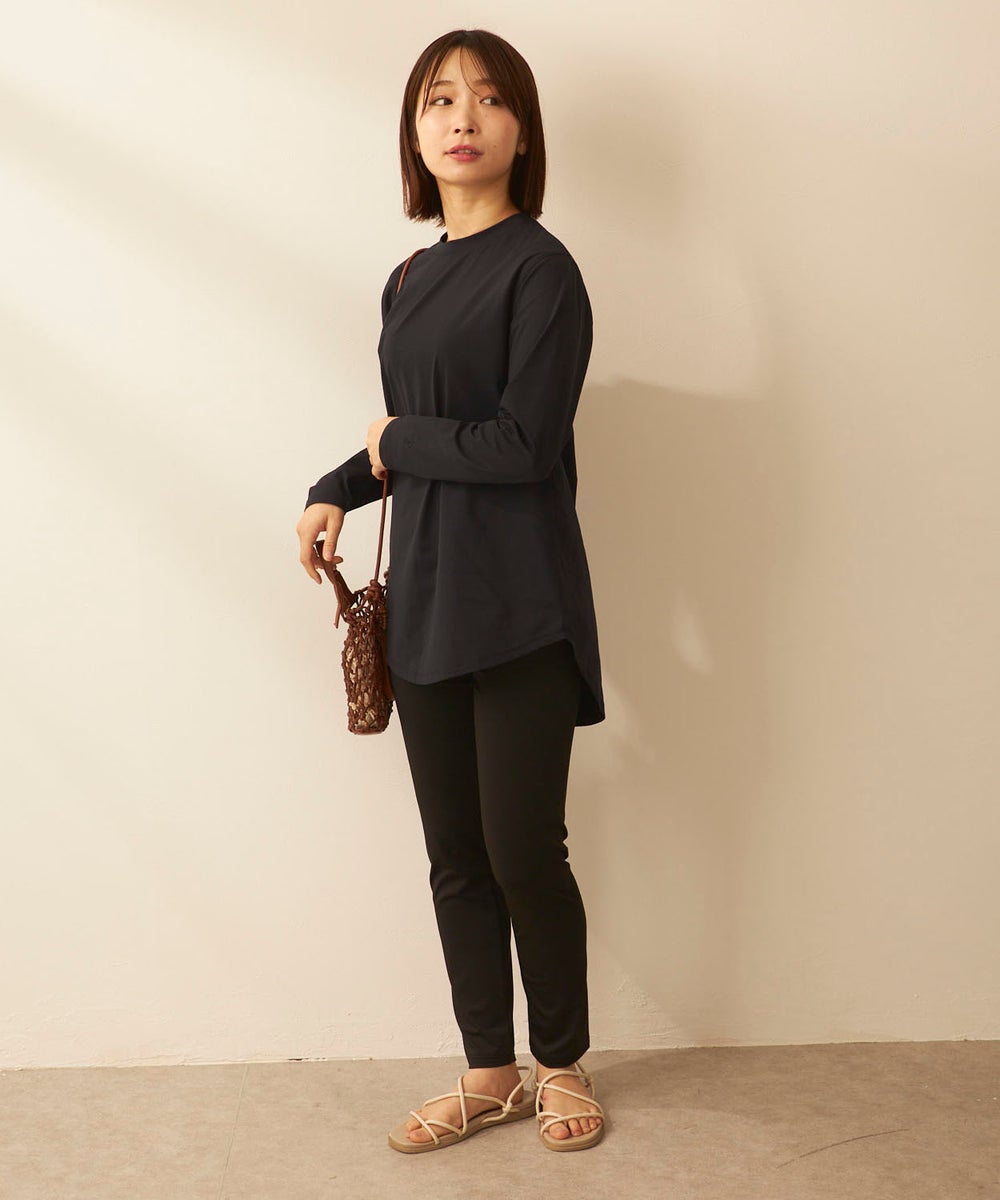 さらっと軽く、快適な着心地が続く「ペアテックス」素材のロンTと、ベーシックなレギンスを組み合わせた セットアイテム。ロンTはヒップラインを自然にカバーする丈感で、体型をさりげなくフォローします。 トップスには、軽量・ストレッチ性に加え、UPF50+の紫外線対策、イージードライ、イージーケア といった機能を備えたペアテックス素材を使用。さらりとした肌あたりで動きやすく、デイリーからアクティブ まで幅広く活躍します。洗ってもすぐ乾き、シワになりにくいため、お手入れも簡単です。