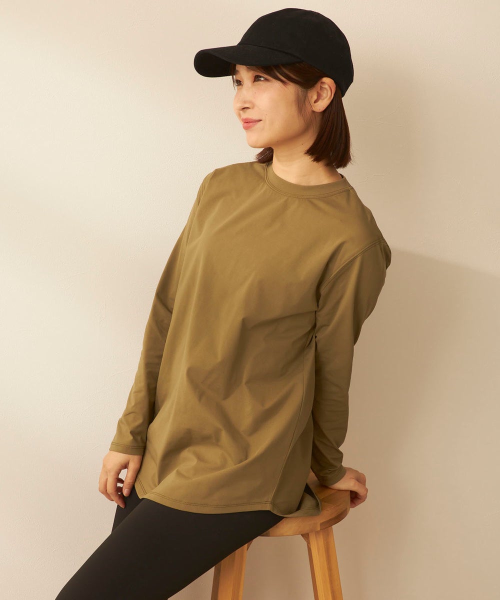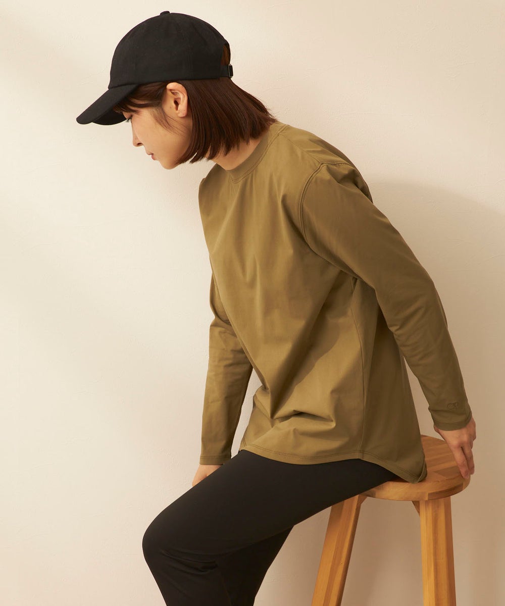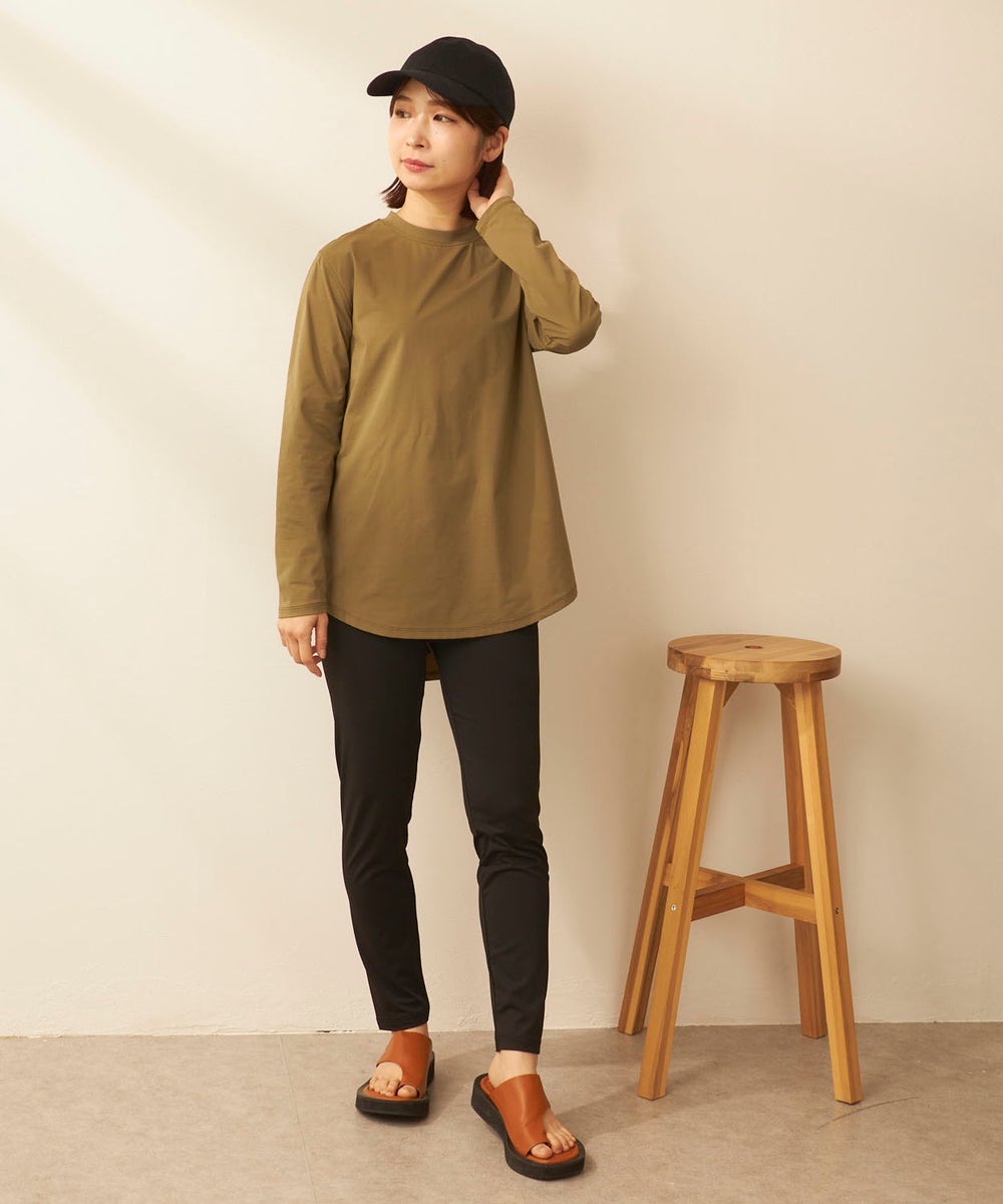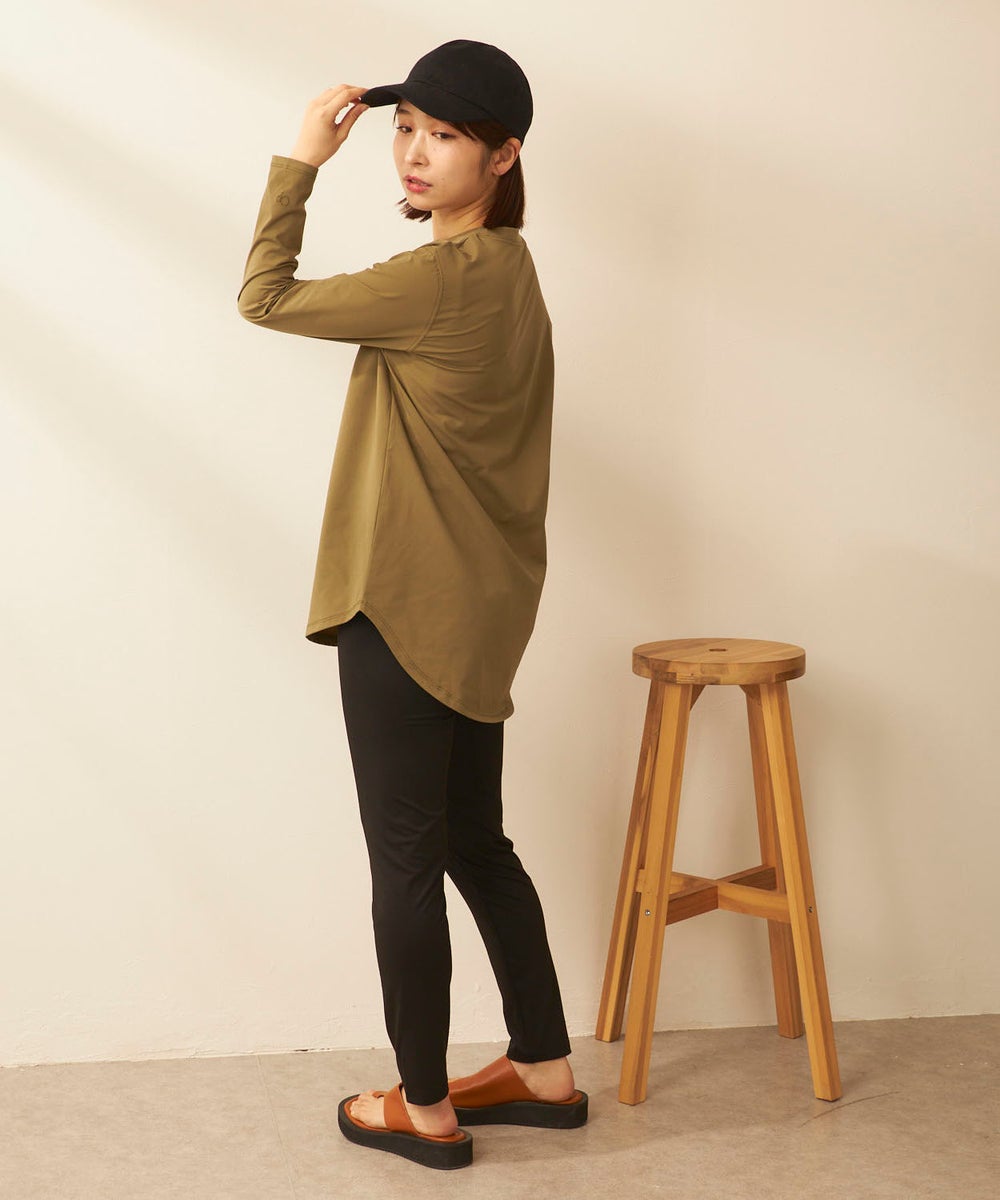 さらっと軽く、快適な着心地が続く「ペアテックス」素材のロンTと、ベーシックなレギンスを組み合わせた セットアイテム。ロンTはヒップラインを自然にカバーする丈感で、体型をさりげなくフォローします。 トップスには、軽量・ストレッチ性に加え、UPF50+の紫外線対策、イージードライ、イージーケア といった機能を備えたペアテックス素材を使用。さらりとした肌あたりで動きやすく、デイリーからアクティブ まで幅広く活躍します。洗ってもすぐ乾き、シワになりにくいため、お手入れも簡単です。