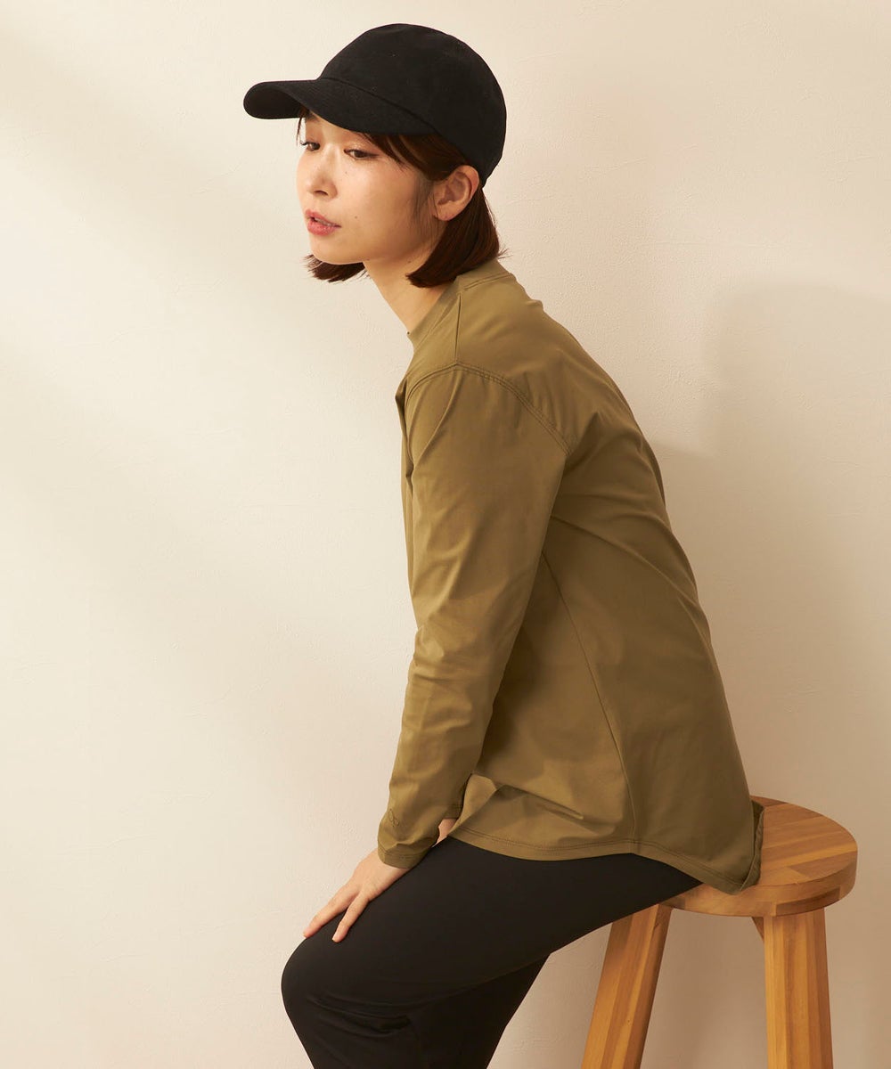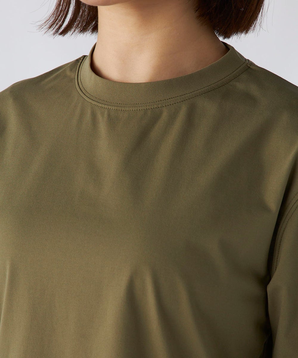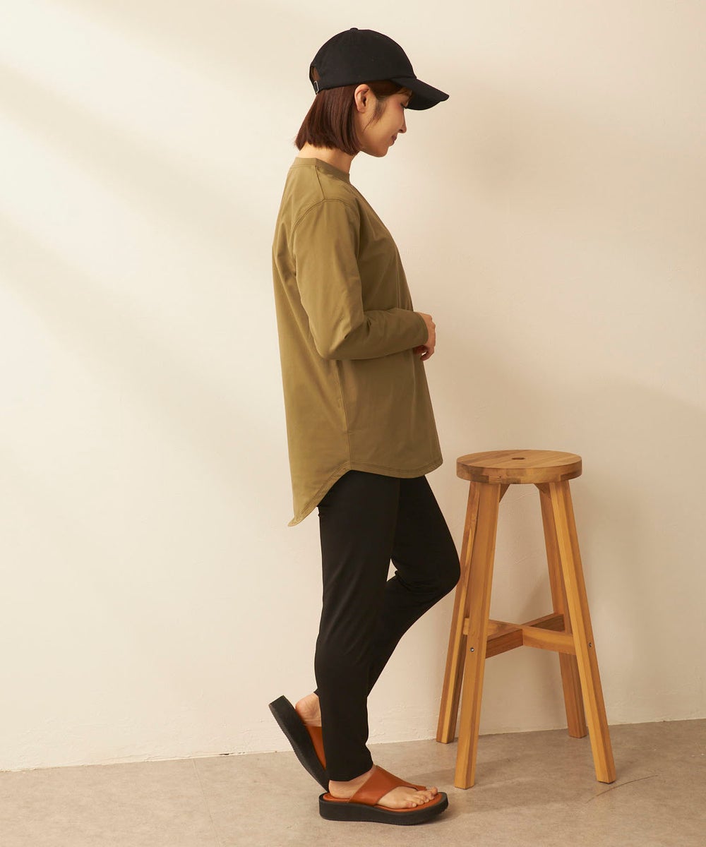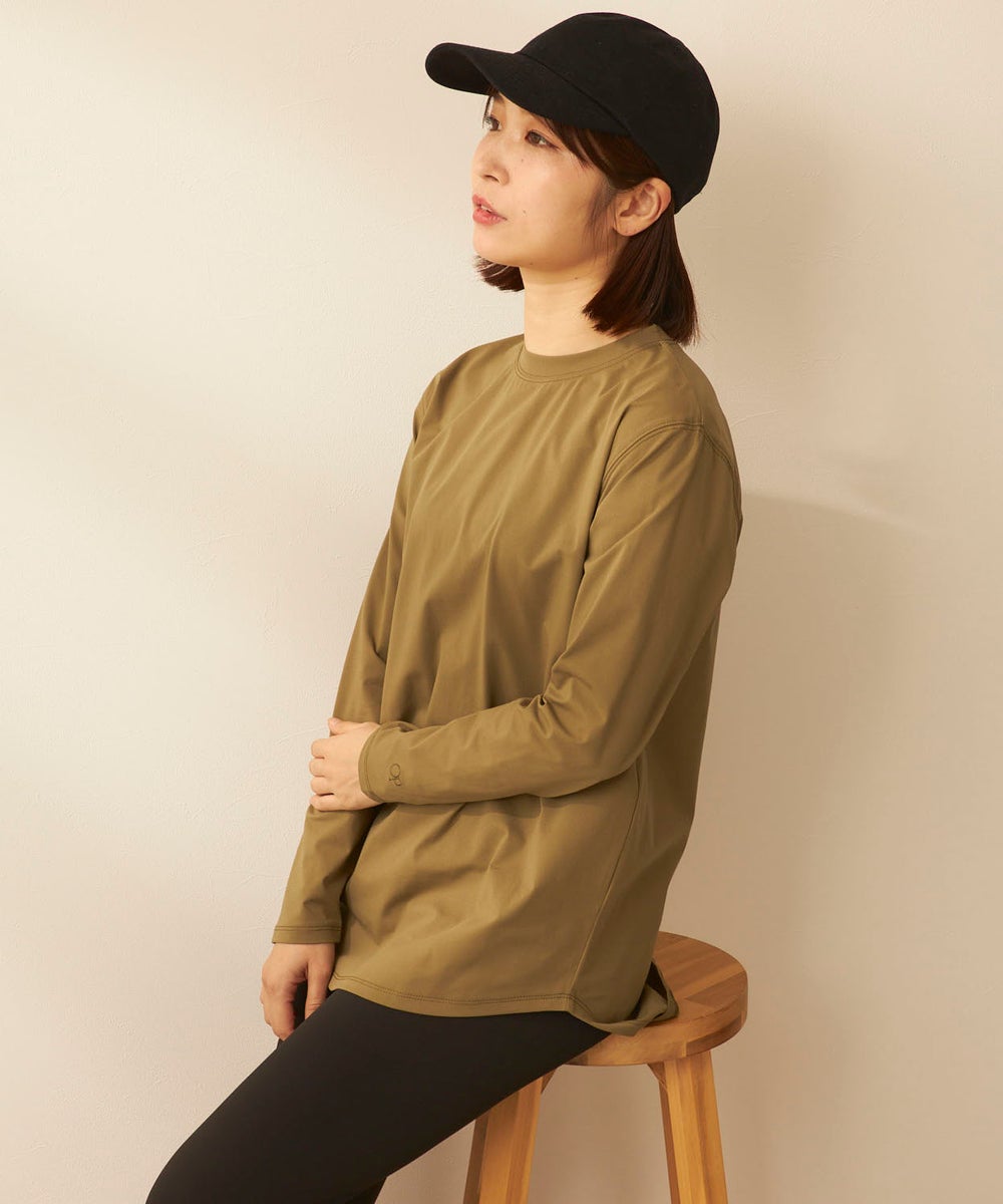 さらっと軽く、快適な着心地が続く「ペアテックス」素材のロンTと、ベーシックなレギンスを組み合わせた セットアイテム。ロンTはヒップラインを自然にカバーする丈感で、体型をさりげなくフォローします。 トップスには、軽量・ストレッチ性に加え、UPF50+の紫外線対策、イージードライ、イージーケア といった機能を備えたペアテックス素材を使用。さらりとした肌あたりで動きやすく、デイリーからアクティブ まで幅広く活躍します。洗ってもすぐ乾き、シワになりにくいため、お手入れも簡単です。