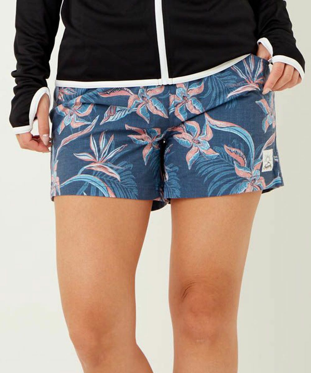 シックな色使いのボタニカル柄を採用して、大人っぽく落ち着いたデザインに。ウエストゴムのイージー仕様で穿きやすく、ビーチやアクティブなシーンだけでなくリラックスタイムにもオススメです。