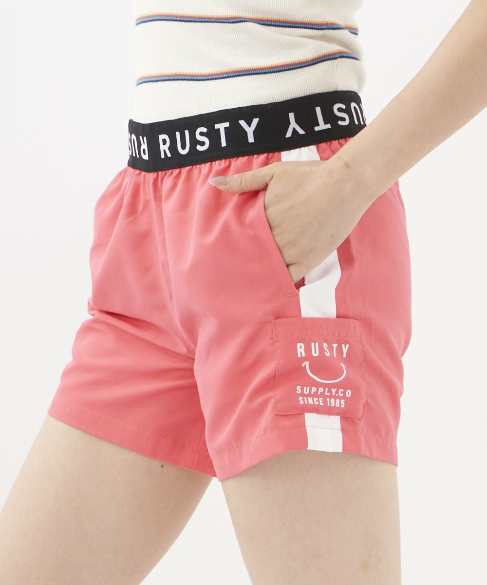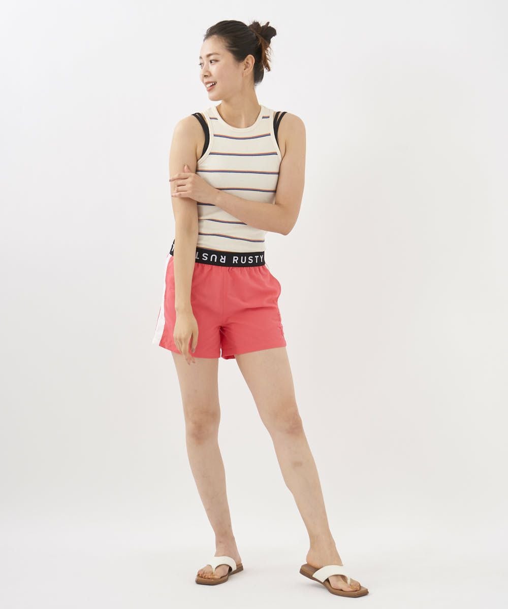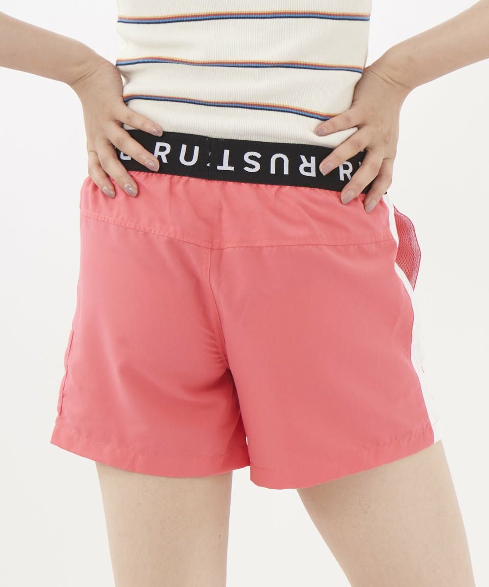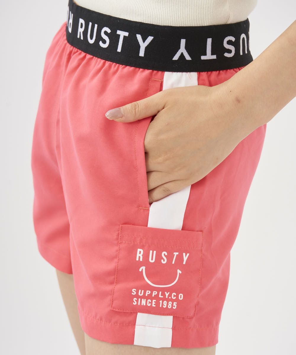 ポリエステル100%のマイクロ素材を使用。両脇のコントラストパネル配色とウエストのブランドロゴをジャガード織りしたゴムがポイント。