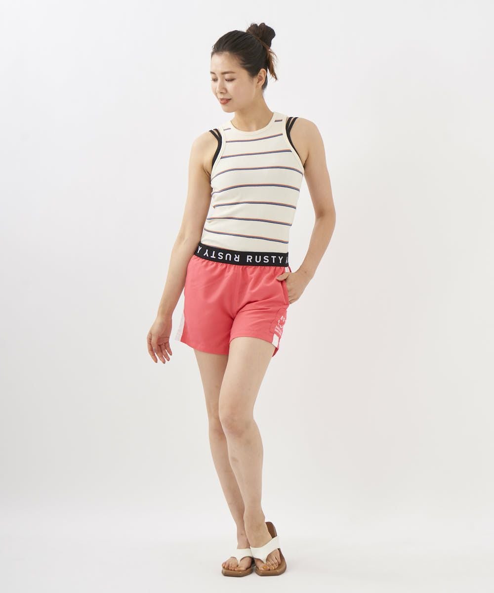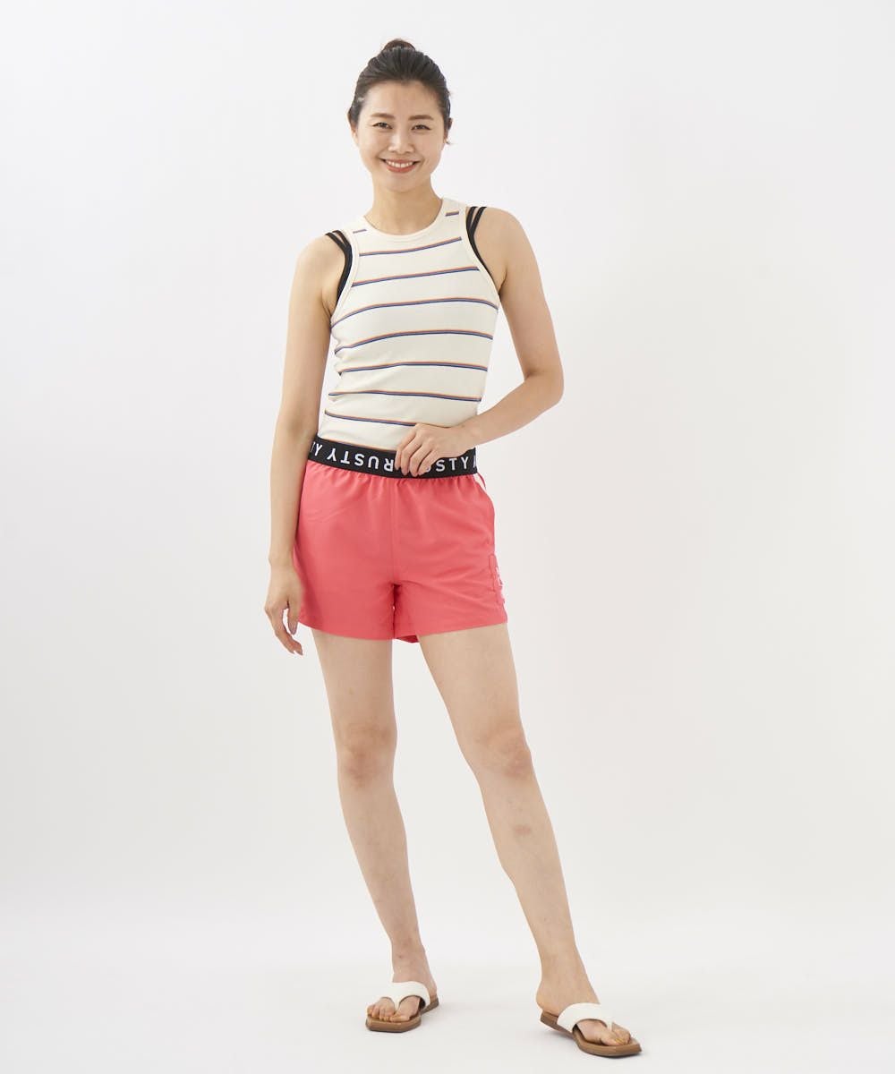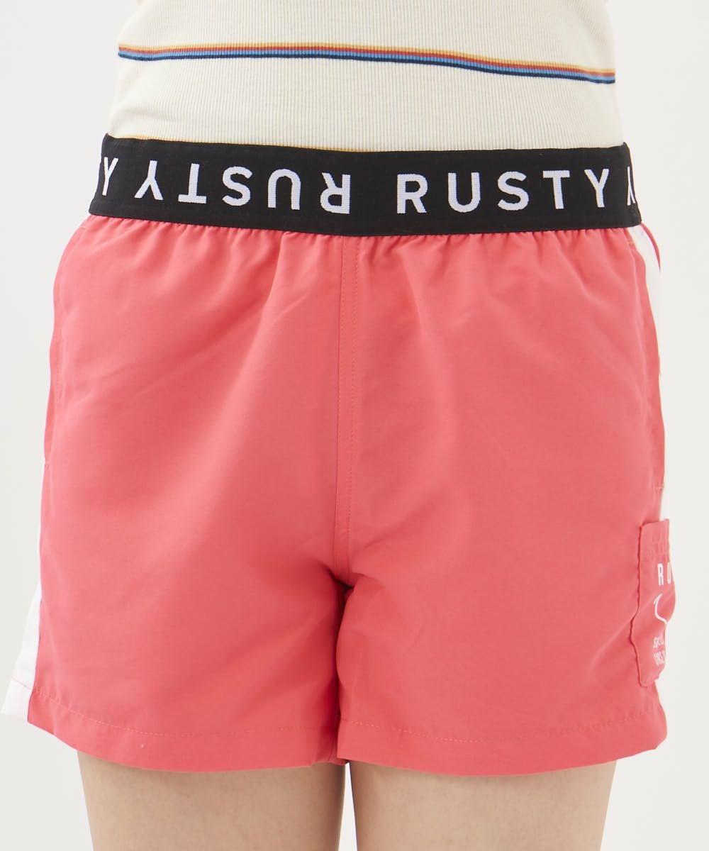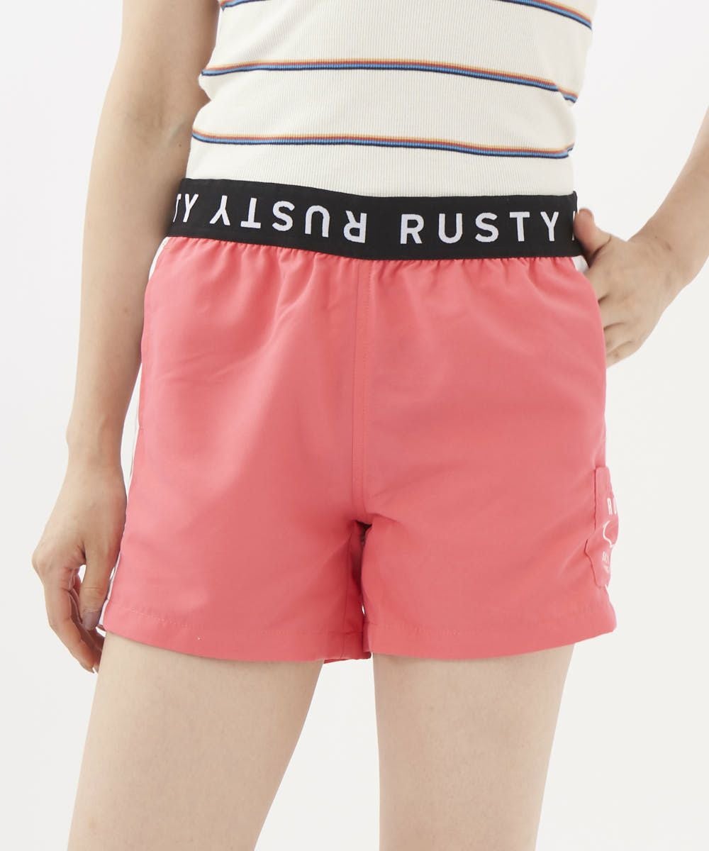 ポリエステル100%のマイクロ素材を使用。両脇のコントラストパネル配色とウエストのブランドロゴをジャガード織りしたゴムがポイント。