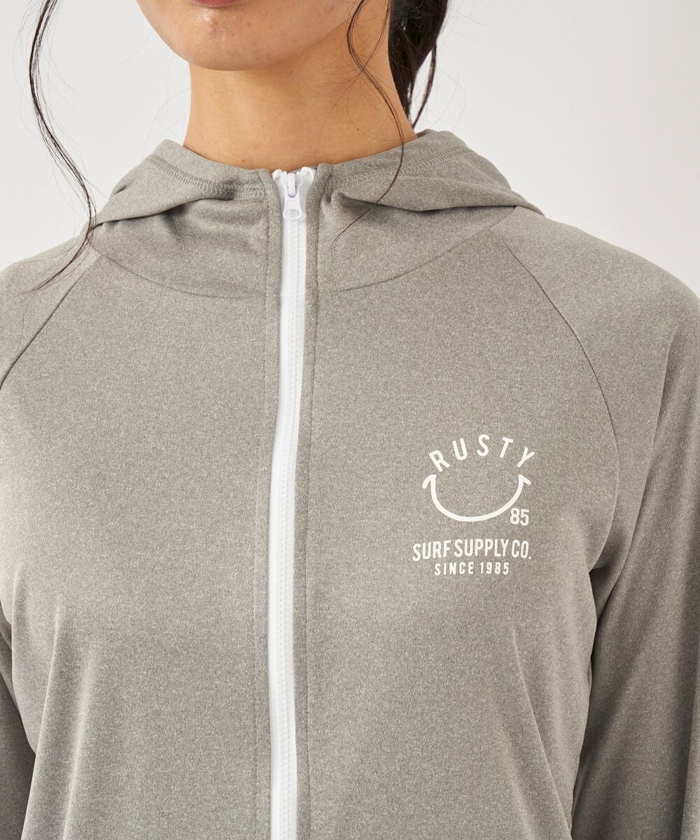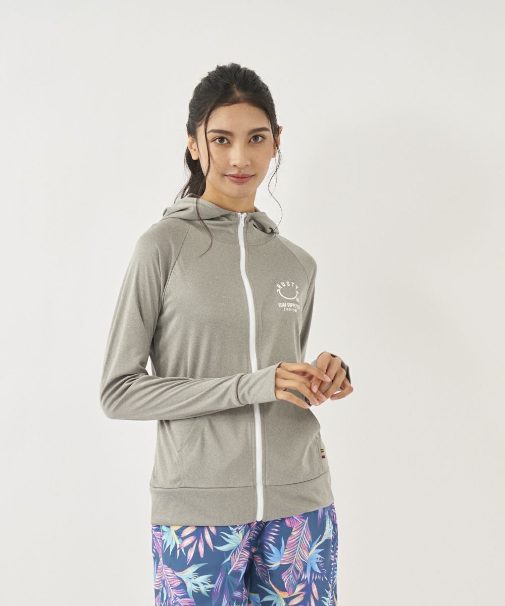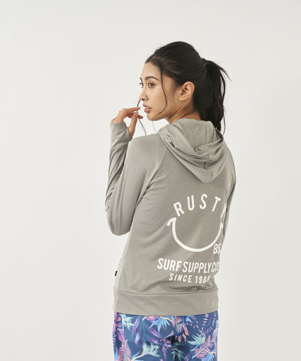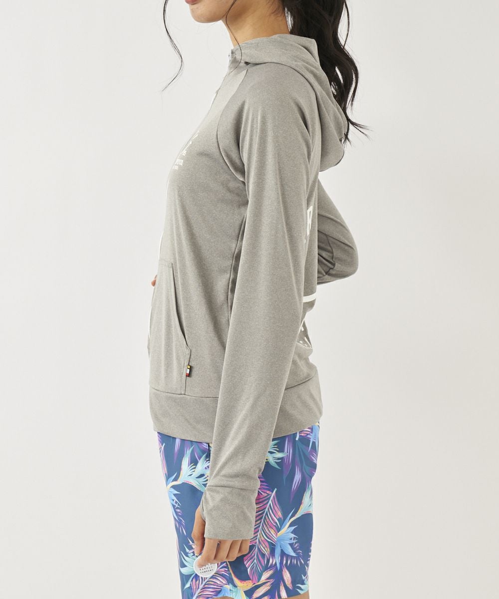 吸汗速乾、UVカット機能を兼ね揃えたポリエステル100%のスムース素材を使用。 人気のニコちゃんシリーズに新色が登場!胸と背中のニコちゃんモチーフがポイント。フード付き。