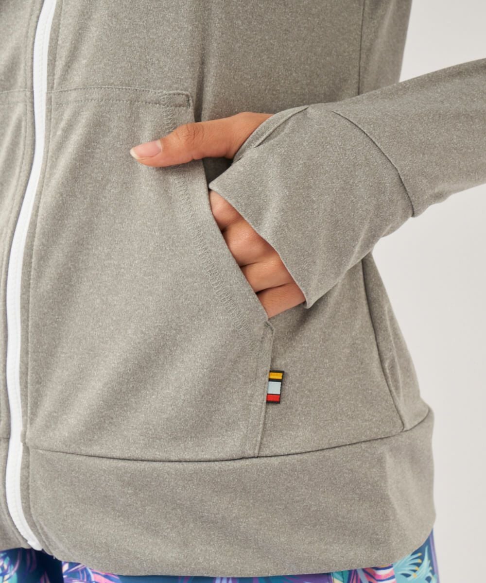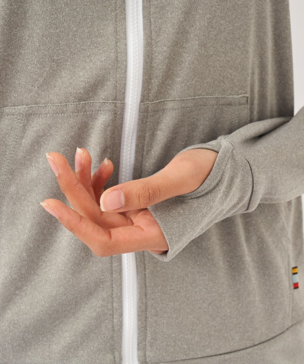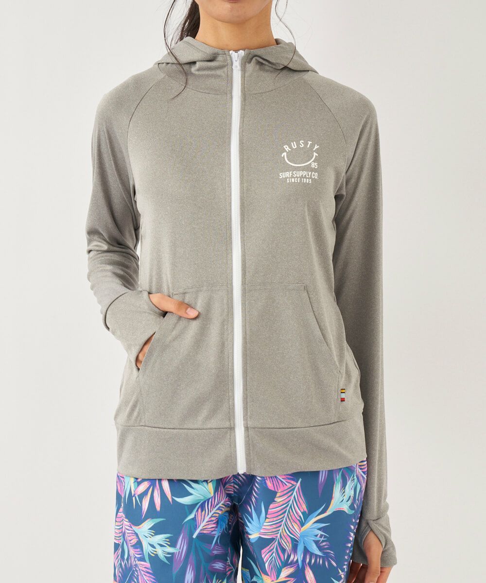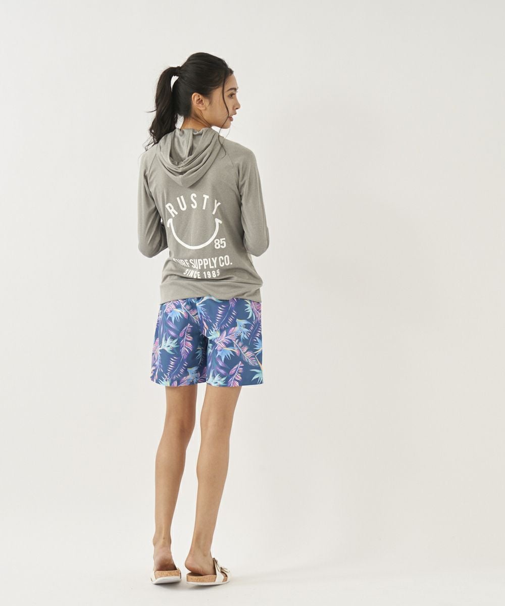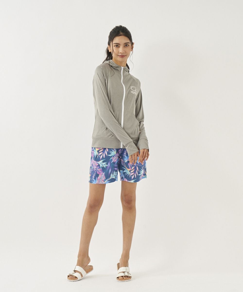 吸汗速乾、UVカット機能を兼ね揃えたポリエステル100%のスムース素材を使用。 人気のニコちゃんシリーズに新色が登場!胸と背中のニコちゃんモチーフがポイント。フード付き。
