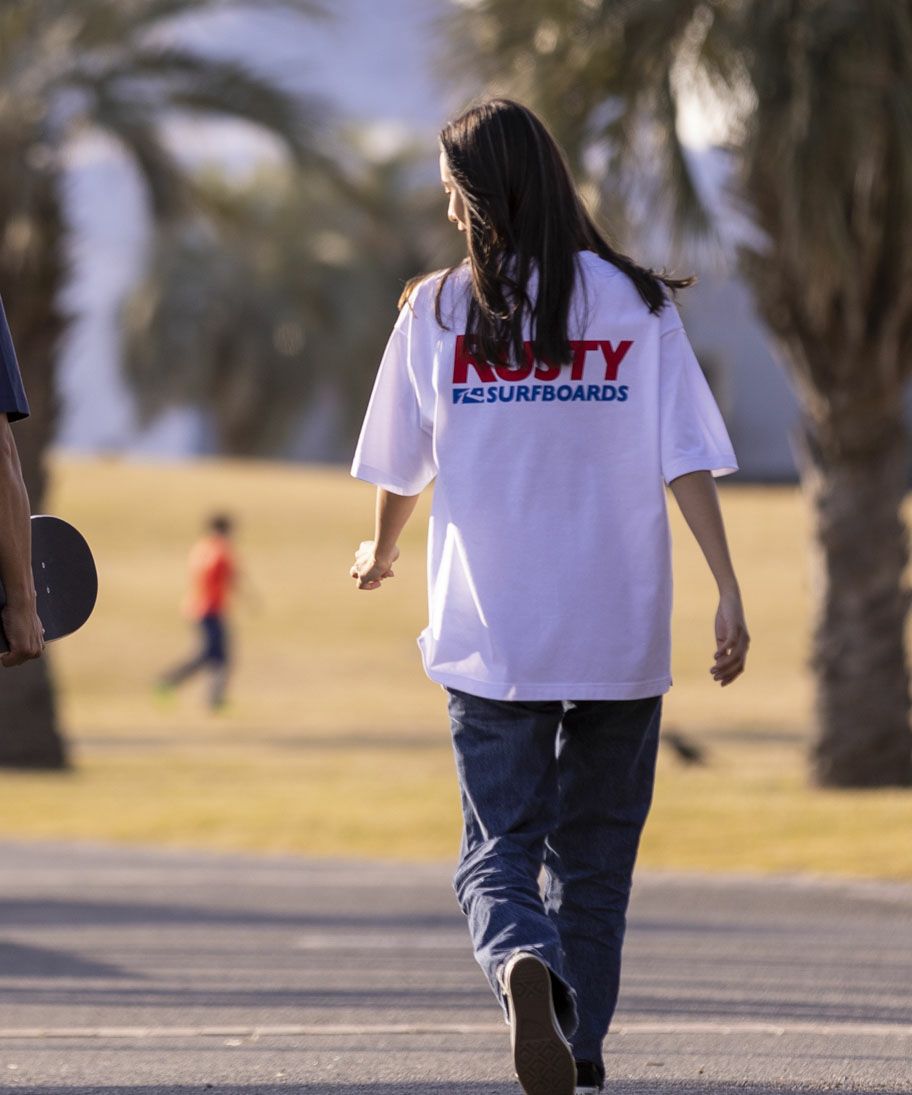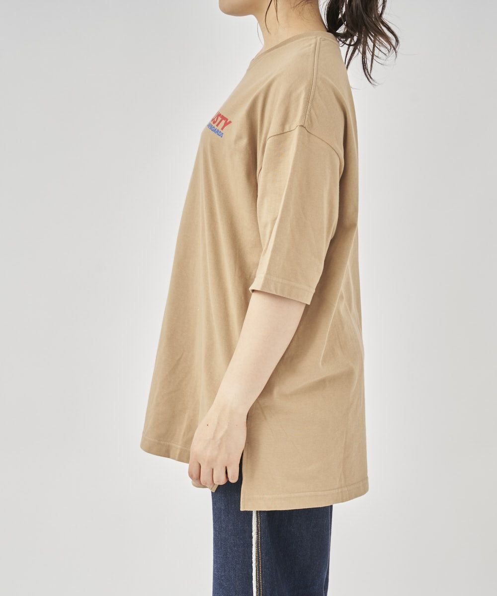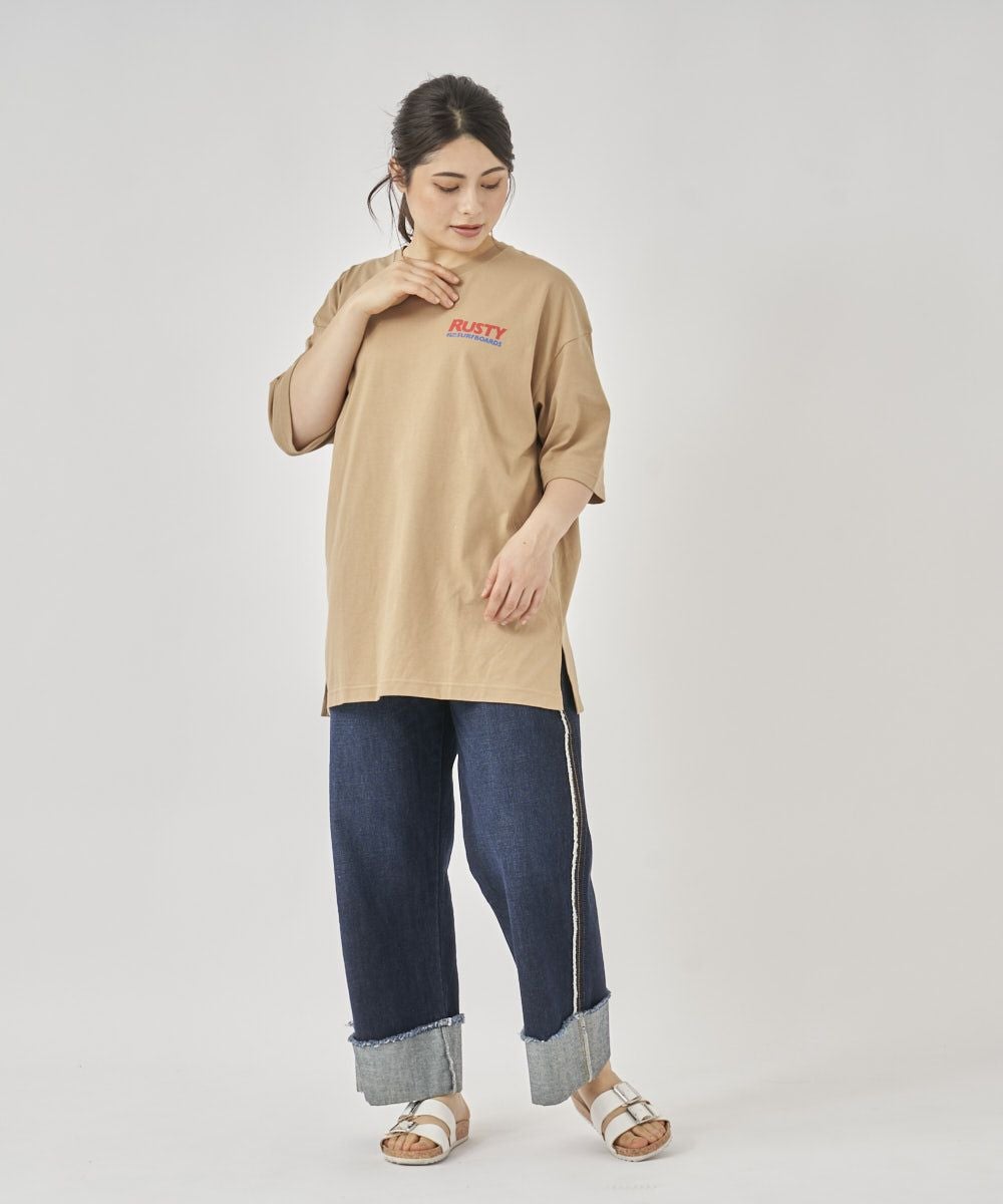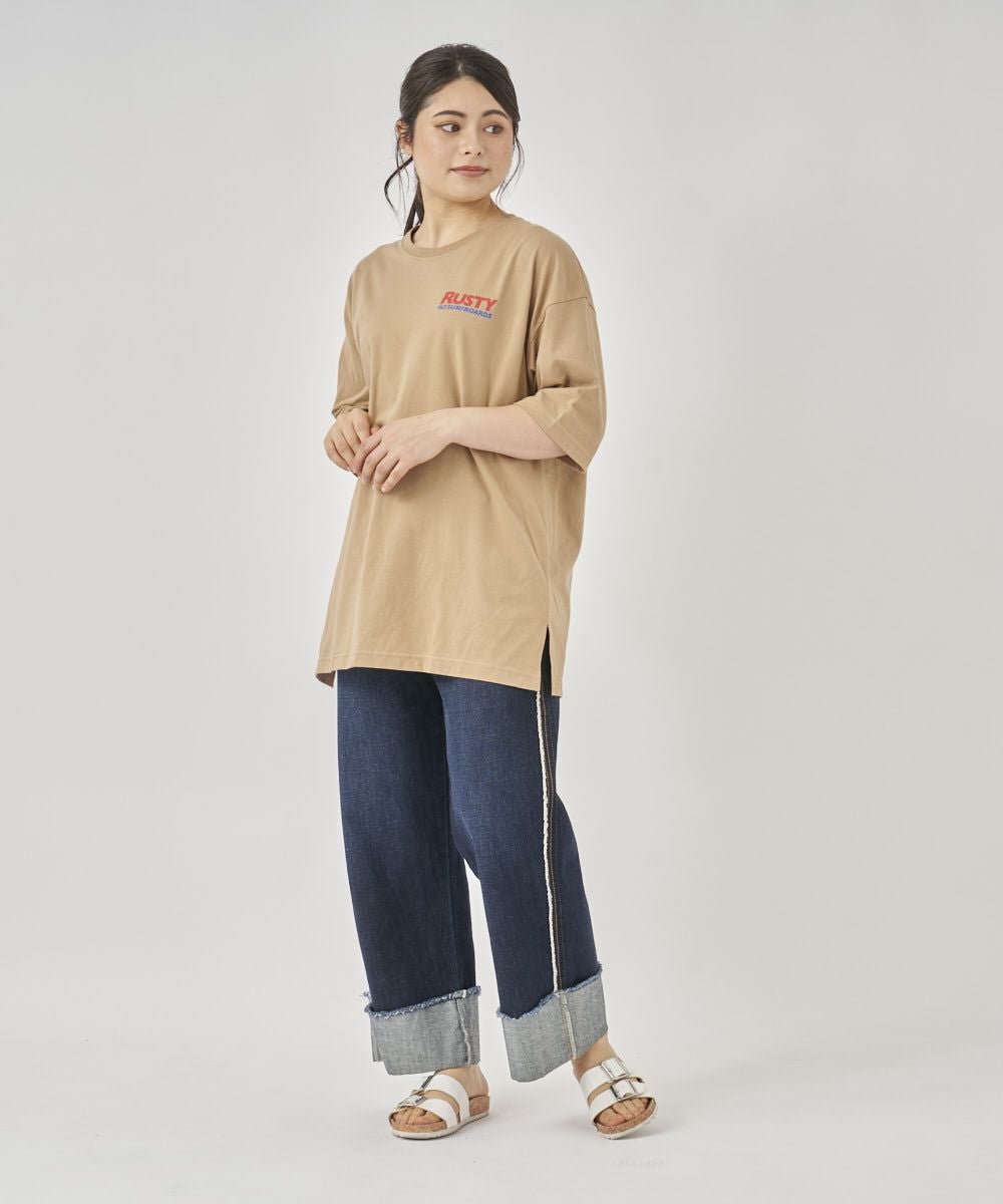 シルエットはトレンドのワイドフィットを採用。素材は上質な40s/2天竺を使用しています。 背中に大胆にプリントされたスポーティーかつストリートな印象のブランドロゴTシャツ。