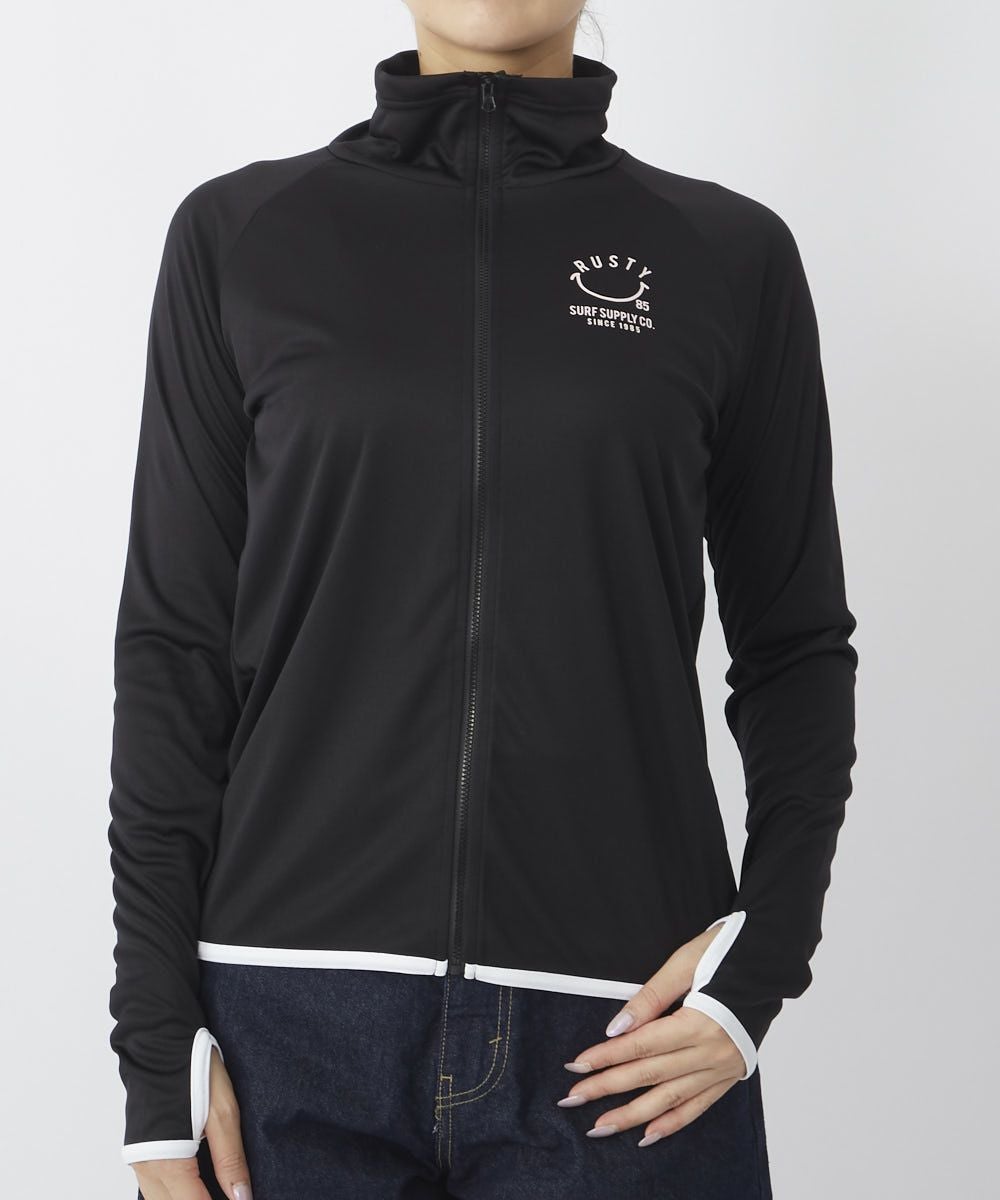 シンプルながらも背面のスマイルロゴがアクセントになった、RUSTYの大人気ニコちゃんシリーズラッシュガード。