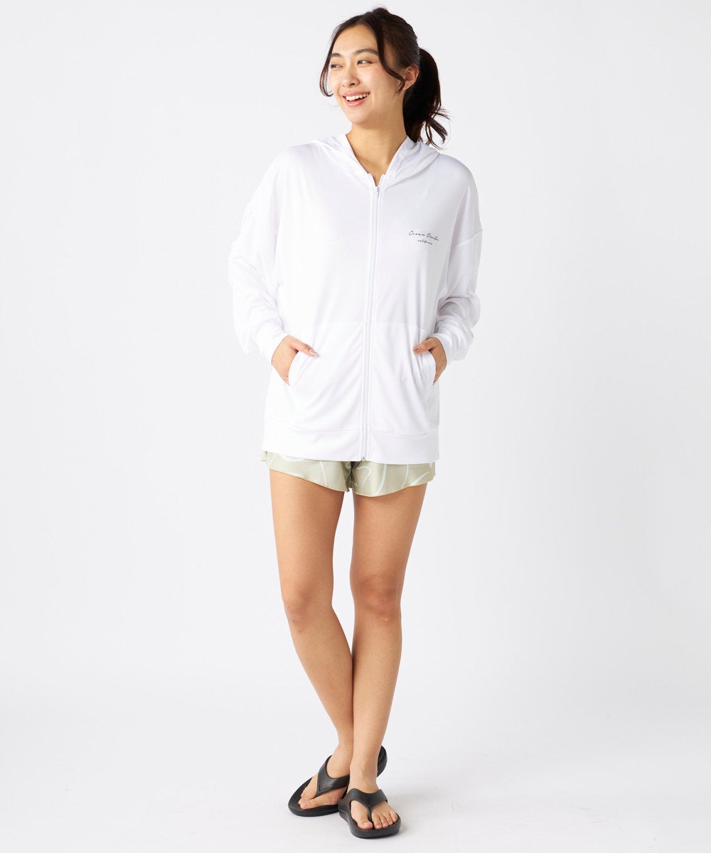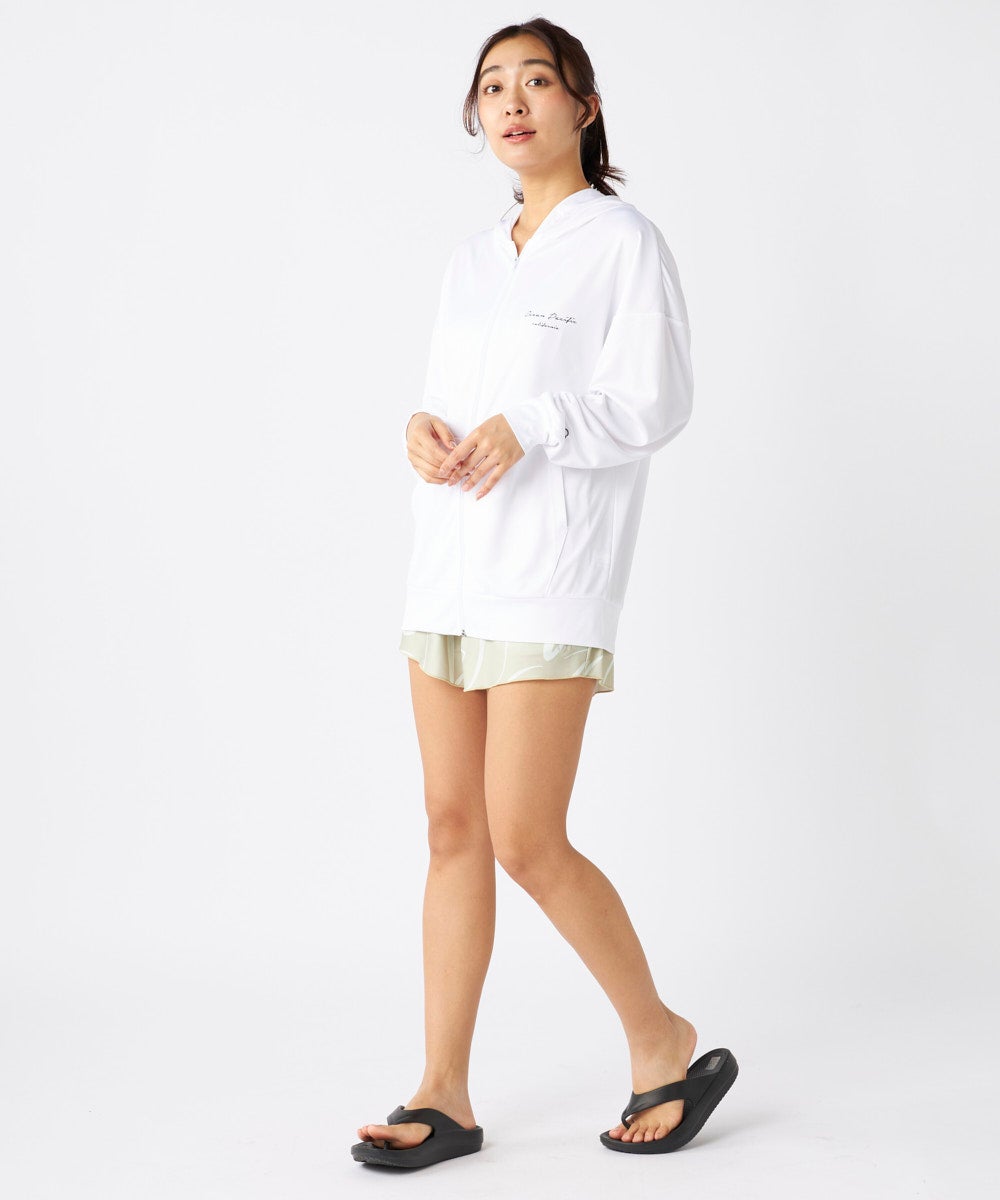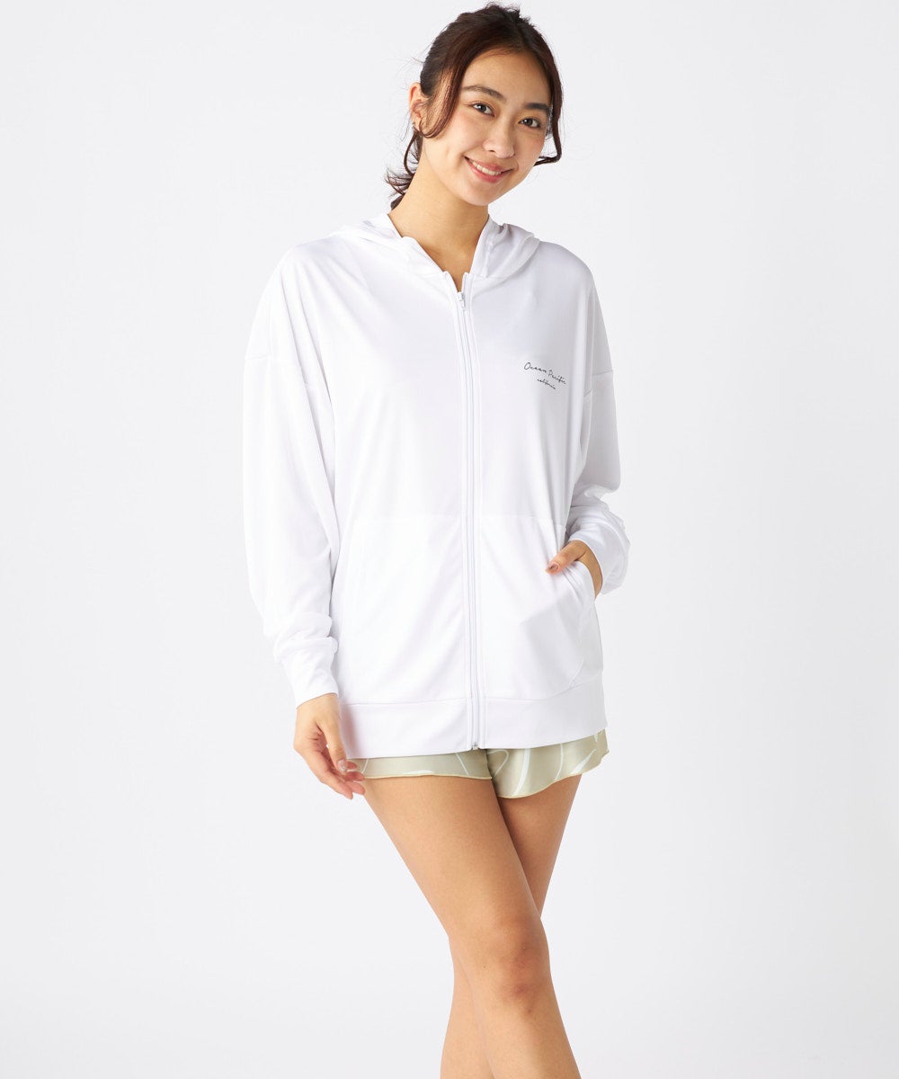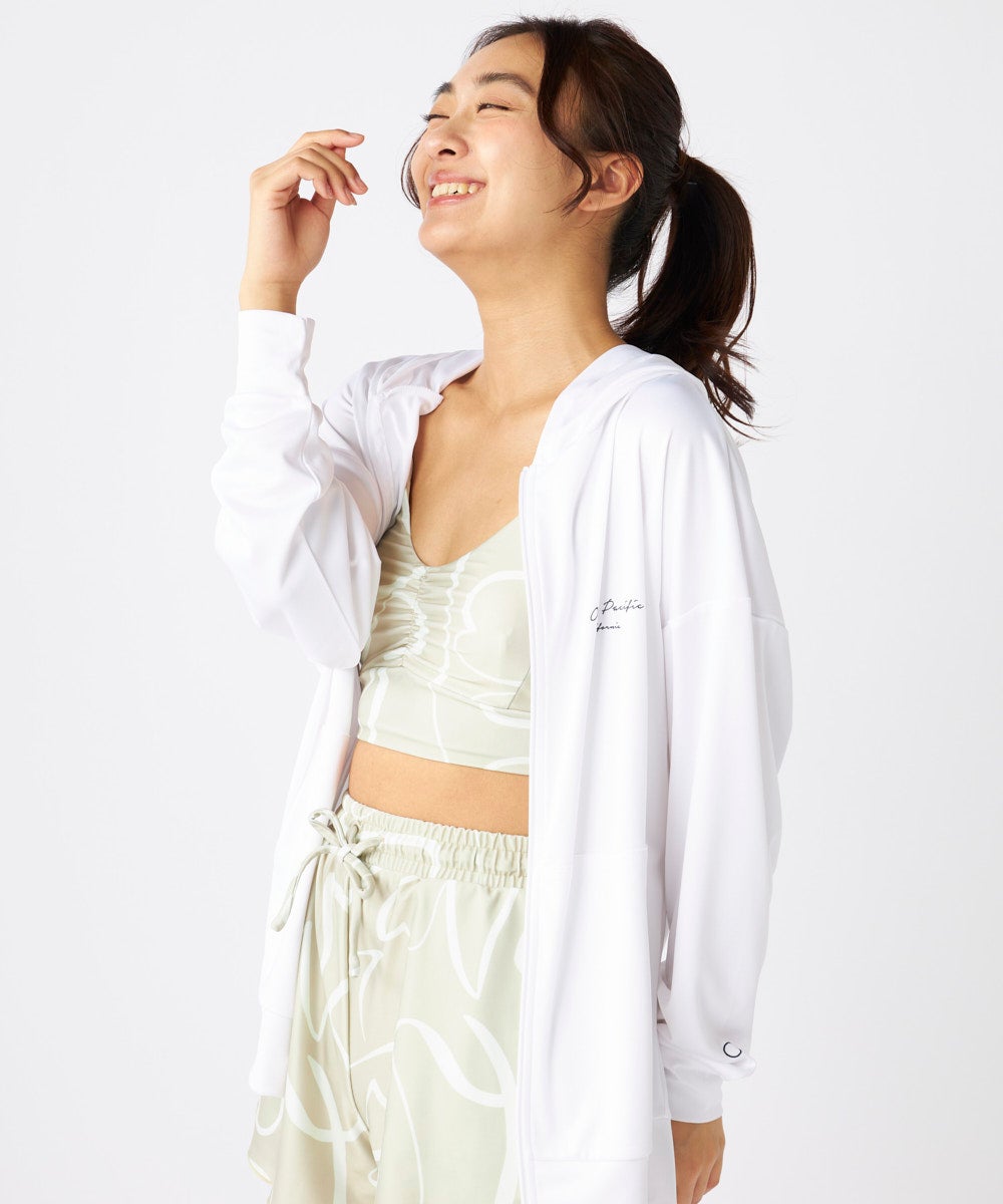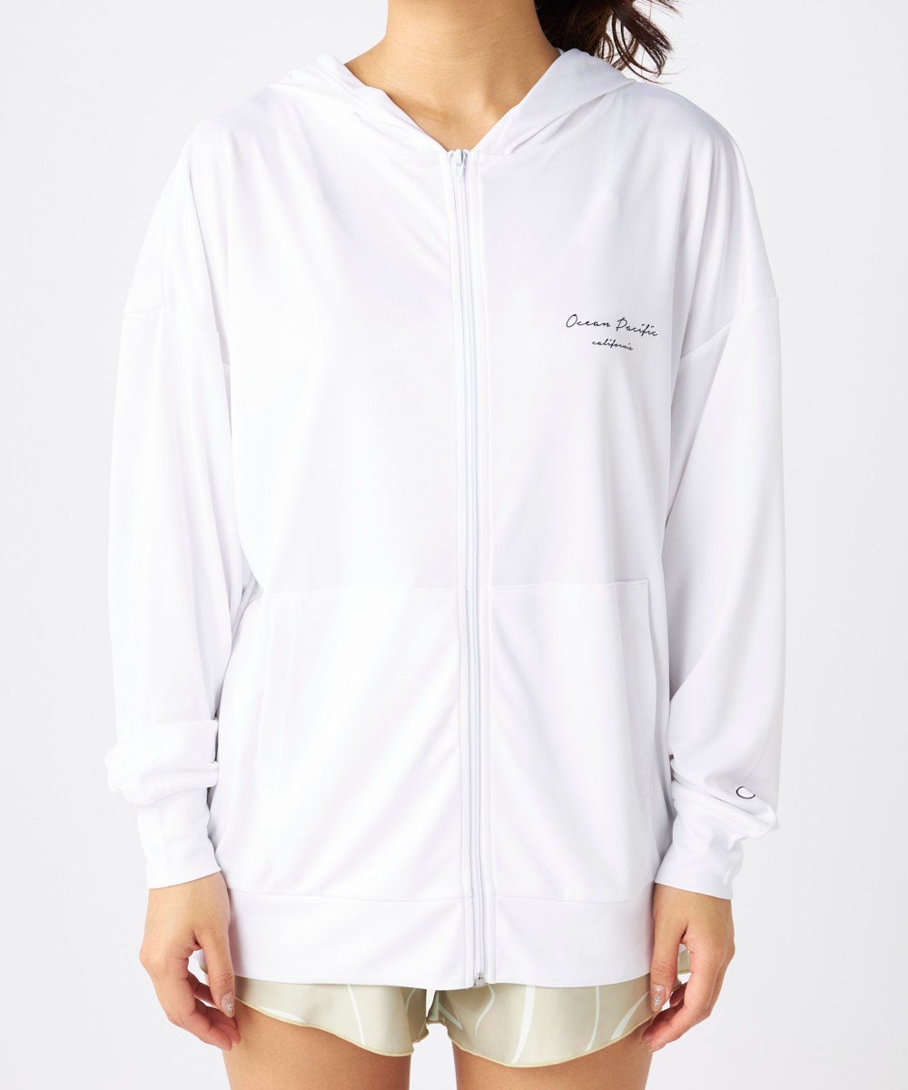 ジップラッシュの付いた4点セット水着です。インナーの水着はブラトップタイプで、着用しやすくずれにくい 仕様です。ボトムはハイウエストタイプで、気になるお腹周りもしっかりカバー、広めの裾で足もすっきり見せ てくれるocean pacific人気のシルエットです。