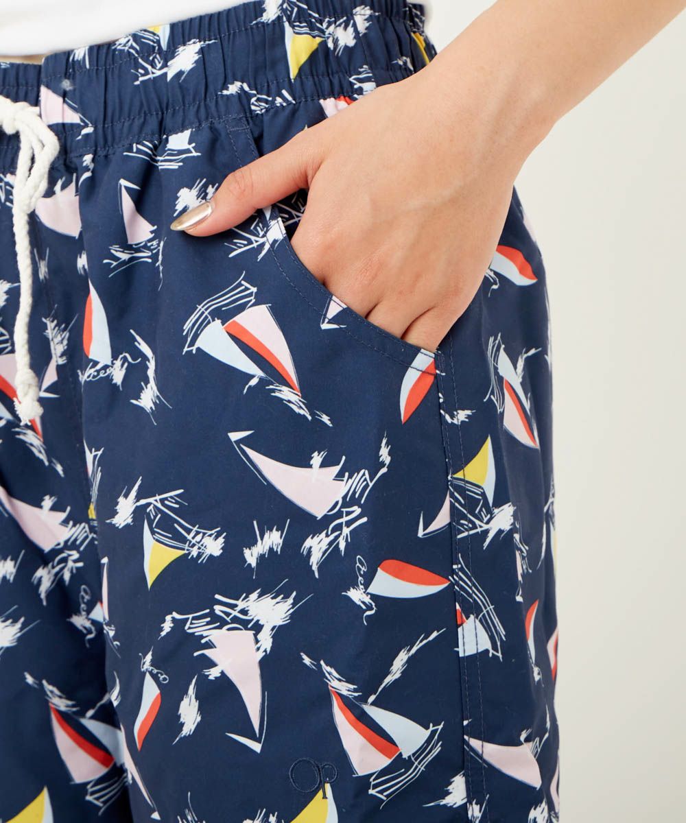 マリンテイストなヨット柄で少しレトロなイラストがOPらしく大人な感じに。