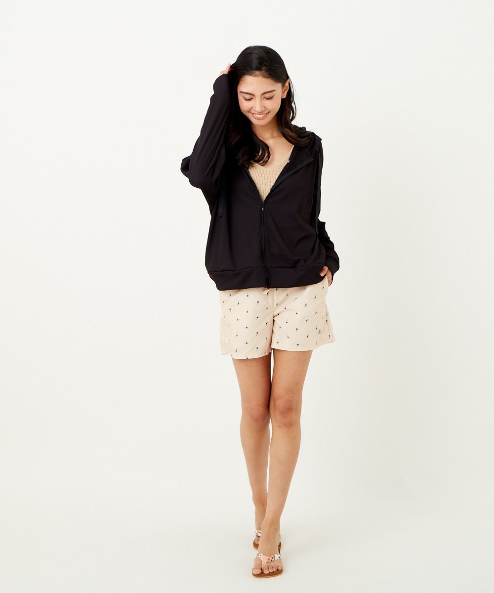 さりげないフラミンゴヤシの木の飛び柄はどんな水着にも合わせやすい一枚です。