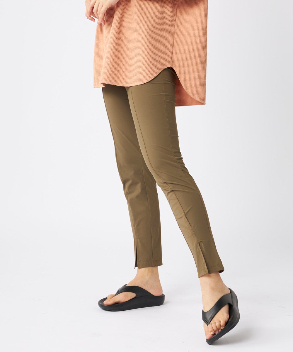 接触冷感機能のナイロン素材を使ったUVロングパンツです。レギンスよりもゆったりしたシルエットで、足の ラインをきれいに見せてくれます。そのまま海やプールにはもちろん、日常のUV対策にもおすすめです。UP F50+ 耐塩素 接触冷感