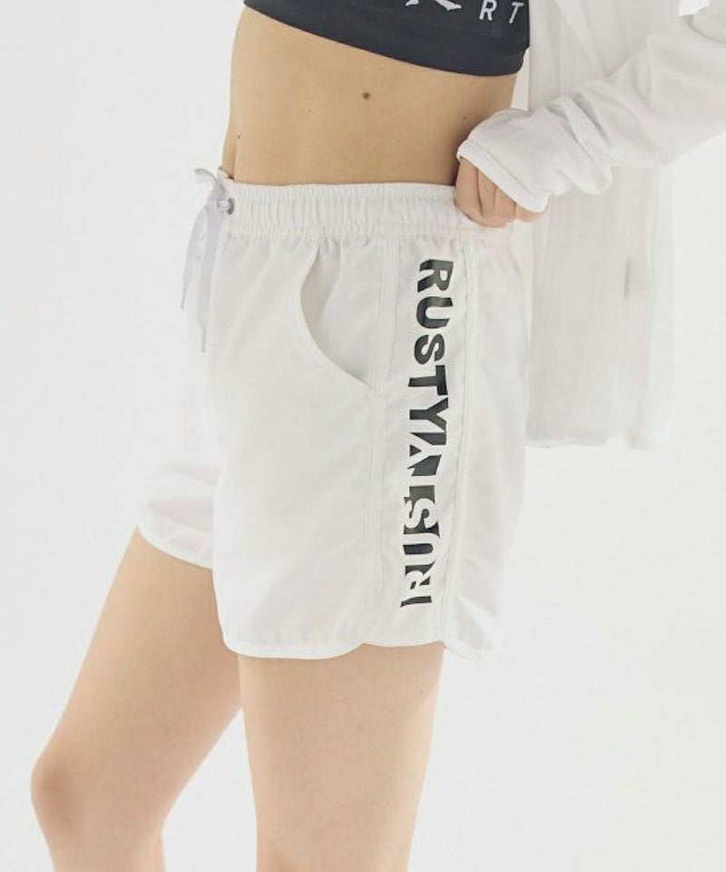 スポーティなデザインがRUSTYらしくてかっこいいレディースボードショーツ。サイドのRUSTYロゴがポイント。ポケットはバックもサイドも付いているのでとても便利です!ウエストは紐で調節可能なので、海やプールでも安心♪