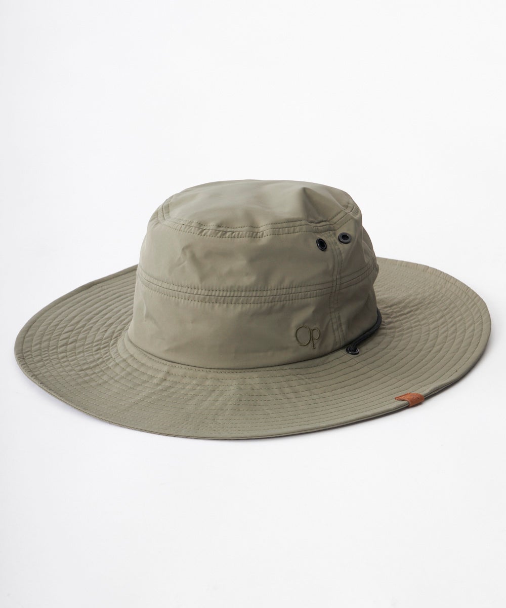 被りを深くした撥水ハット。ツバも広めで日除けに最適。