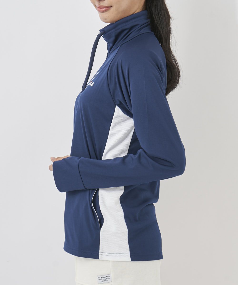 水陸両用・UV遮蔽率90%以上。UVフルジップジャケット。脇とスタンド衿内側がメッシュ切り替えなので