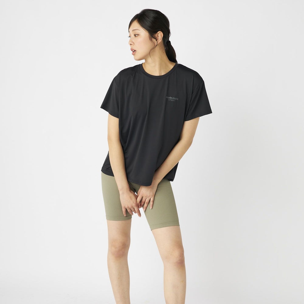 気になる二の腕を隠してくれる袖の形がポイントのTシャツ。後ろタックでボディラインをおしゃれに隠してく れフレアになるので風を通し快適に着られます。
