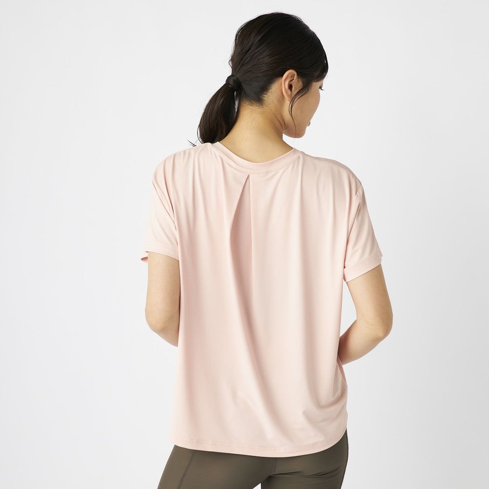 気になる二の腕を隠してくれる袖の形がポイントのTシャツ。後ろタックでボディラインをおしゃれに隠してく れフレアになるので風を通し快適に着られます。