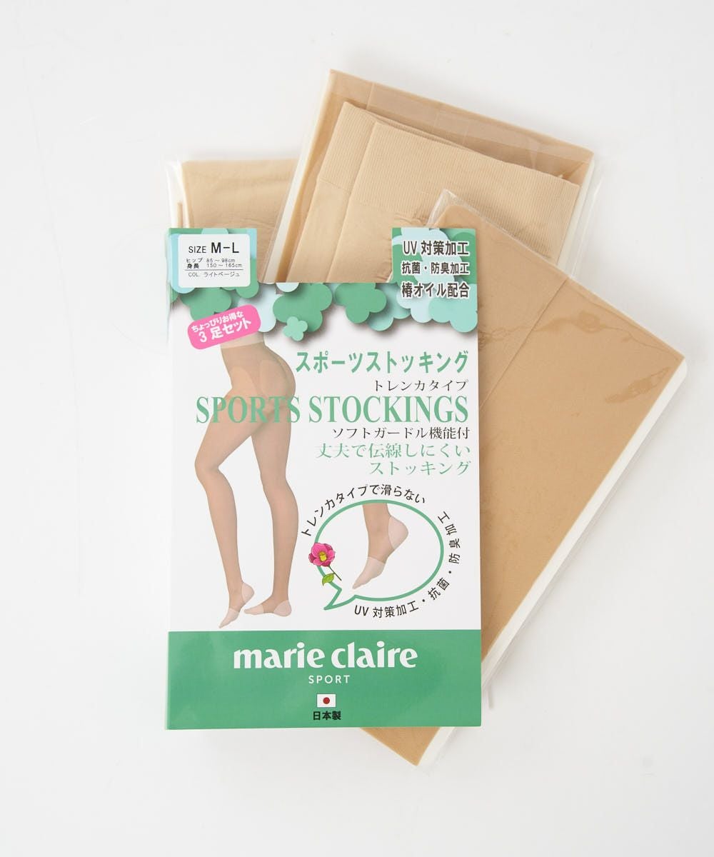 トレンカタイプの素肌に近い美脚スポーツストッキングの3足セット。ソフトガードル機能で腰回りがスッキリ。ノンラン編みで耐久性に優れています。トレンカタイプなのでシューズの中で滑りにくいです。椿オイル配合。