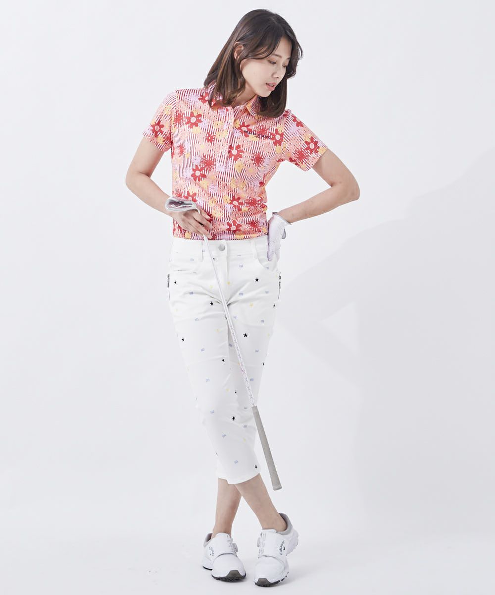 レディース 花柄半袖ポロシャツ|吸水速乾 / UV遮蔽率90%以上 / 接触冷感 / ストレッチ