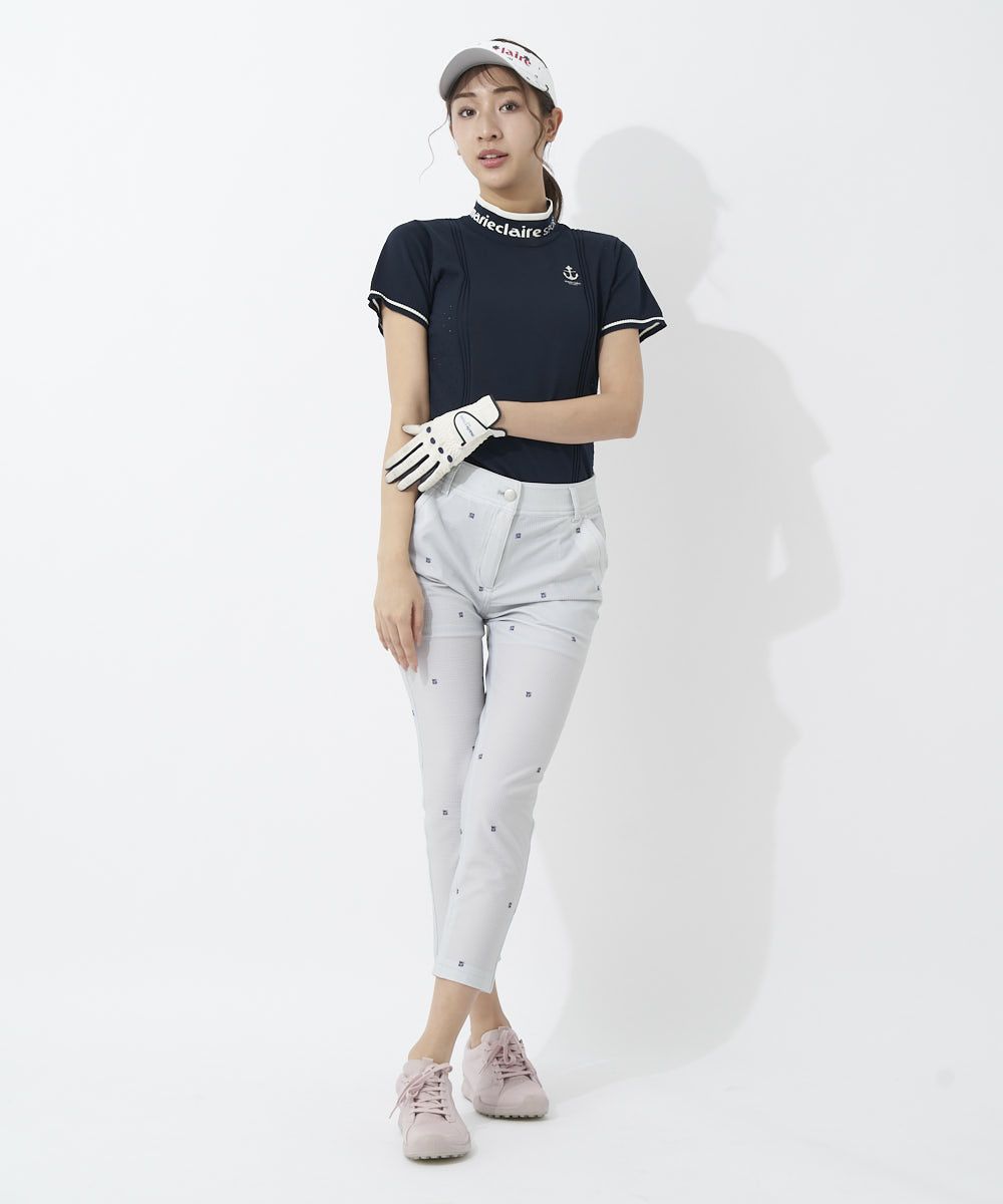 ドット刺繍が上品な印象のストレッチパンツ♪立体的なサッカー素材でサラっと爽やかな着心地です。