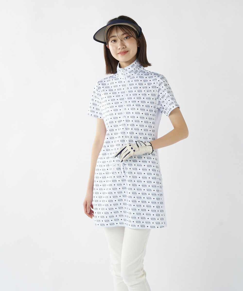 レディース モノグラム柄ハーフジップチュニック| 吸汗速乾・UV・吸湿涼感・接触冷感