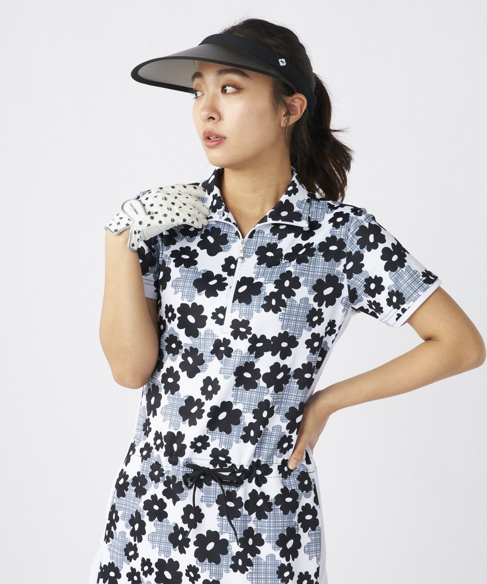 大胆なお花柄が印象的な大人可愛い半袖チュニック。一枚で存在感をを持たせる柄ながら着やすいお手持ちのアイテムに合わせやすい!薄くてサラッとしたポリエステル素材です。ハーフジップなので、首元まで閉めれば首周りの紫外線対策にも効果的です!