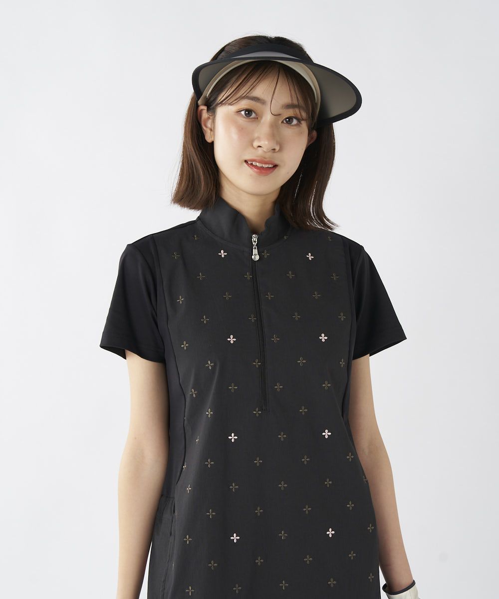 レディース 切替刺繍コードレーン素材ワンピース | 吸汗速乾・UVカット・ストレッチ