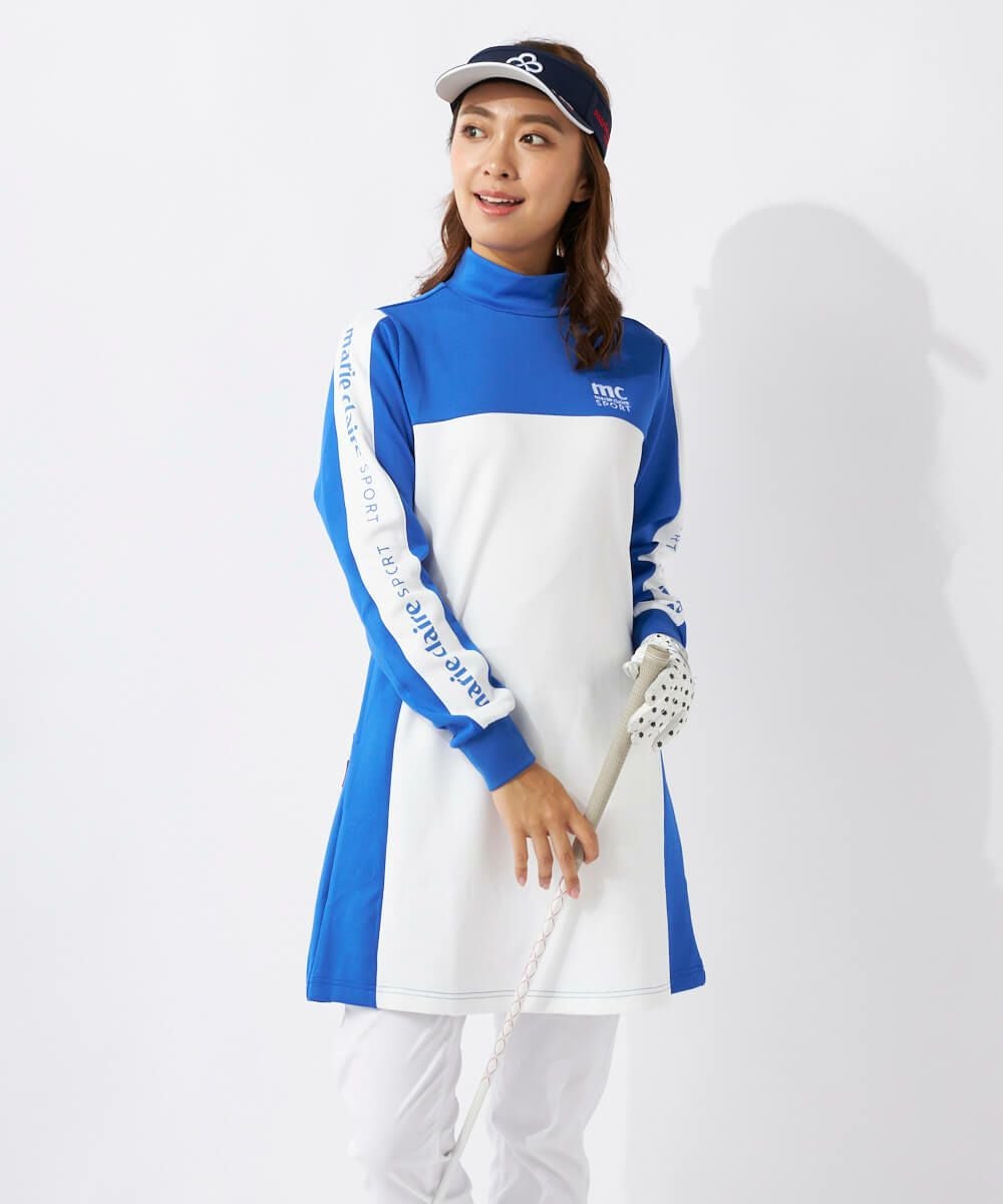 モノトーンの配色切り替えデザインがスポーティなワンピースです。ベルトループ付きでお手持ちのベルトを合わせてウエストマークしたり、ボールポーチを下げたりすることができます。