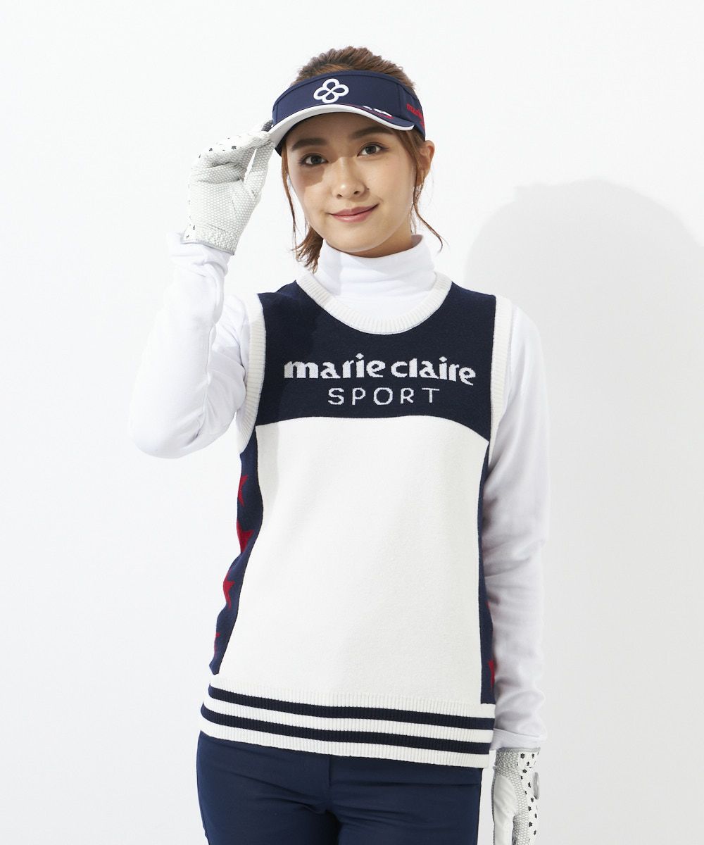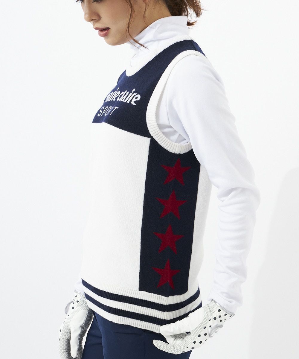 細身え効果のある配色ベストです。サイドの星柄がアクセントに。肌寒いときにインナー上に着て頂けるアイテムとなっております。