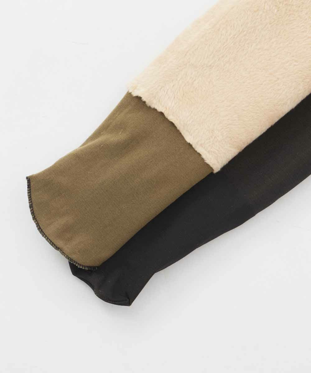 透け感のあるシアータイツにふんわりしたボア裏起毛生地で1200デニール相当の厚みを作り出し、軽やかな透明感と暖かさの両方を実現したストッキング風タイツ。足首から下は薄手になっているので、靴を履いてもゴワゴワしづらいのが嬉しいポイント。