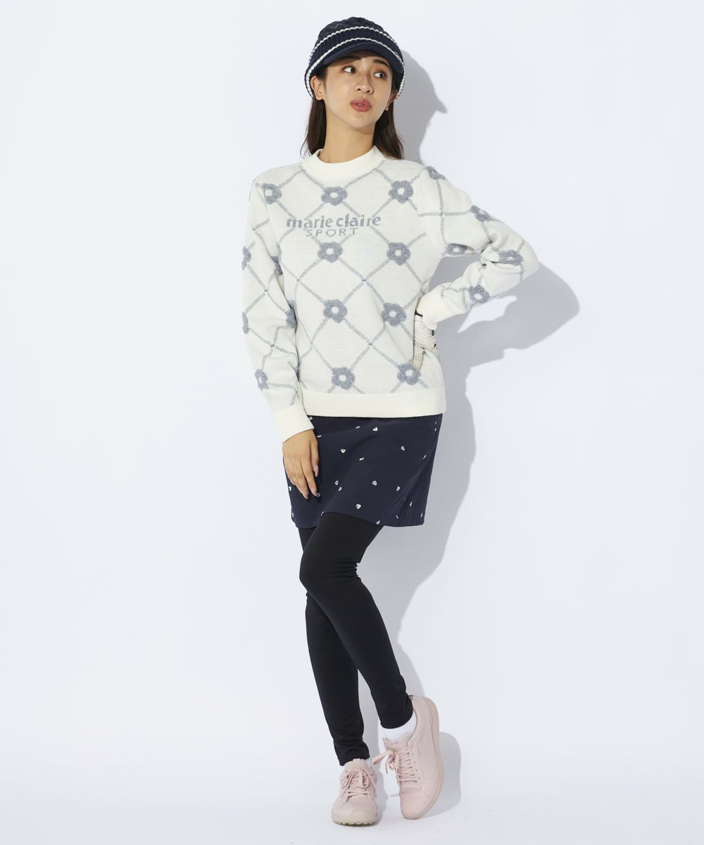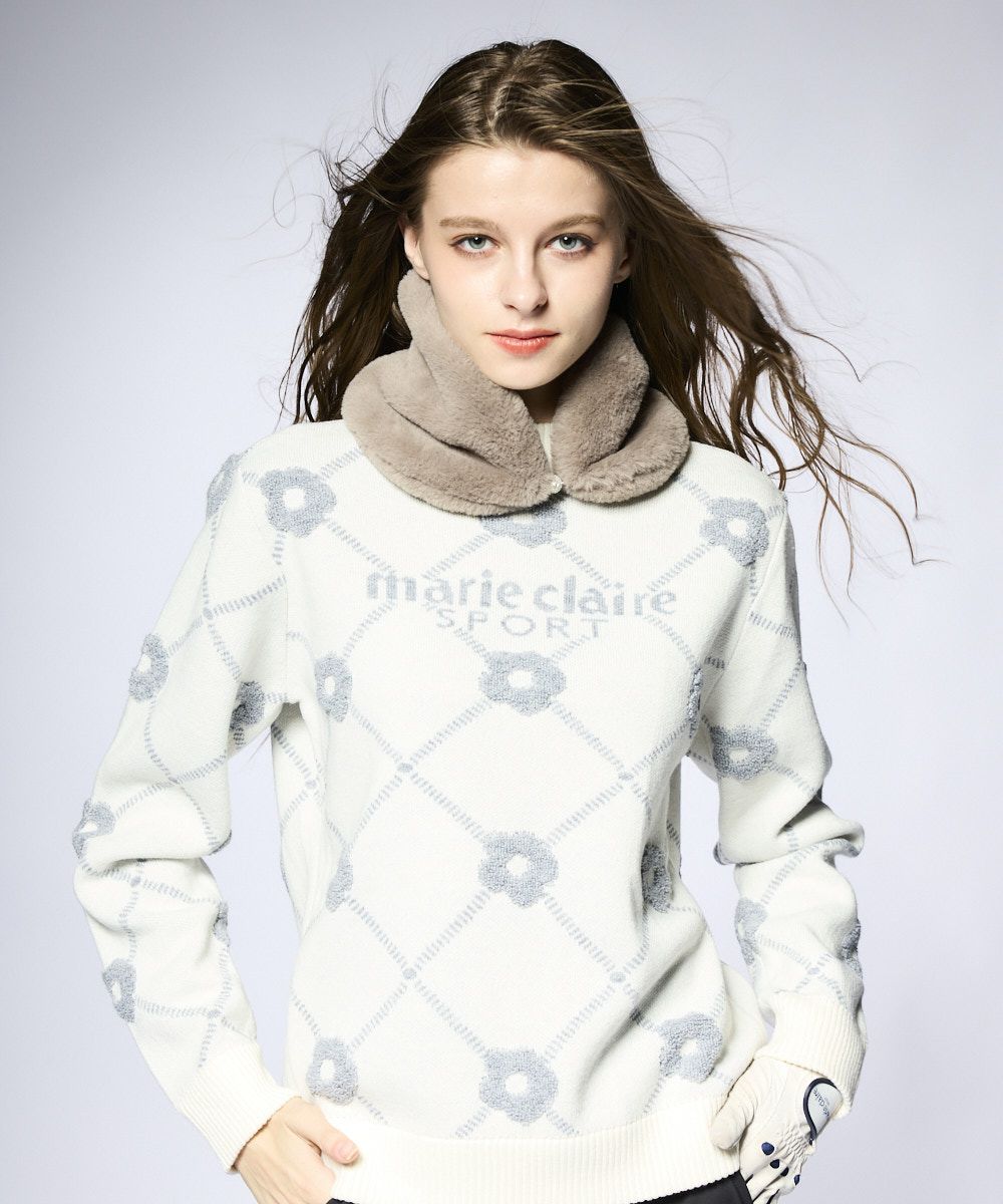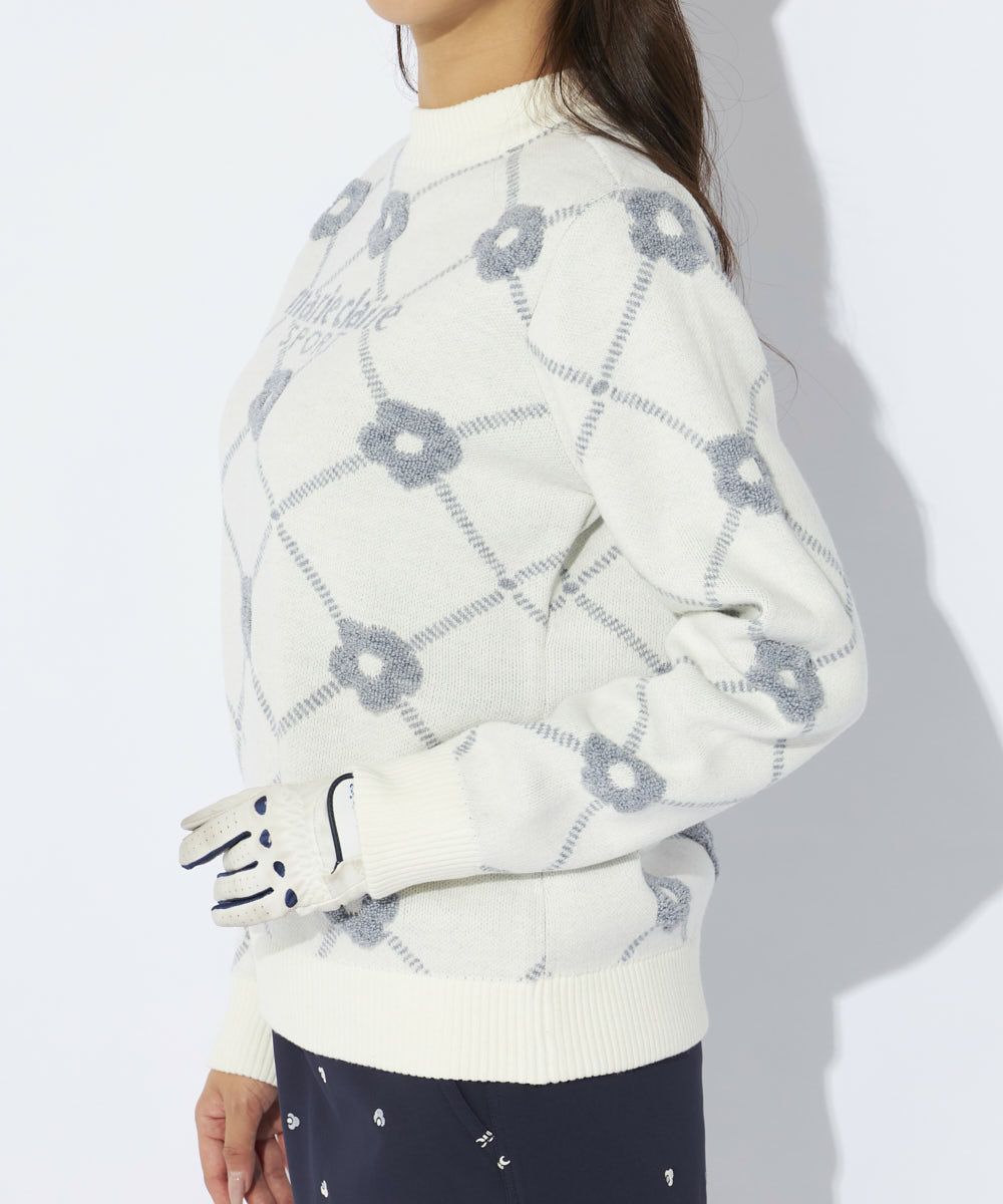 パイル編みのお花柄が可愛いクルーセーター♪軽くて膨らみ感のあるストレッチニットの大きめシルエット。鮮やかなトレンドカラーがゴルフシーンを演出します。